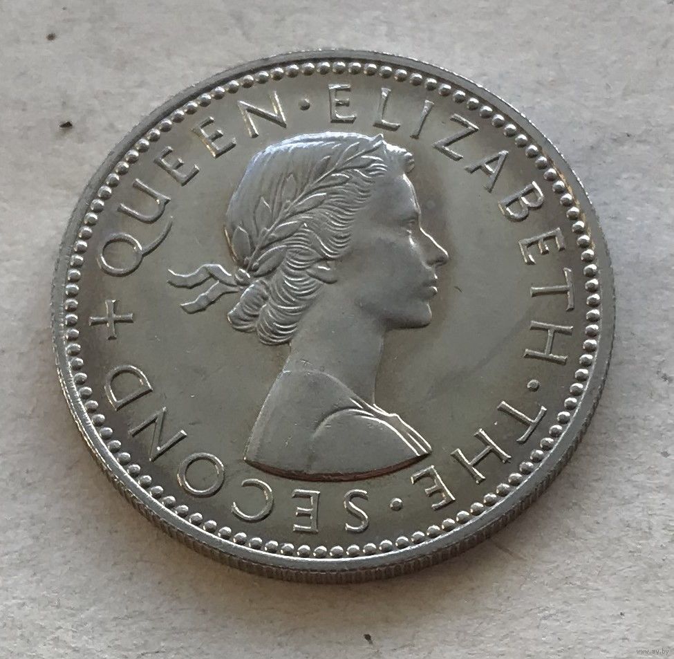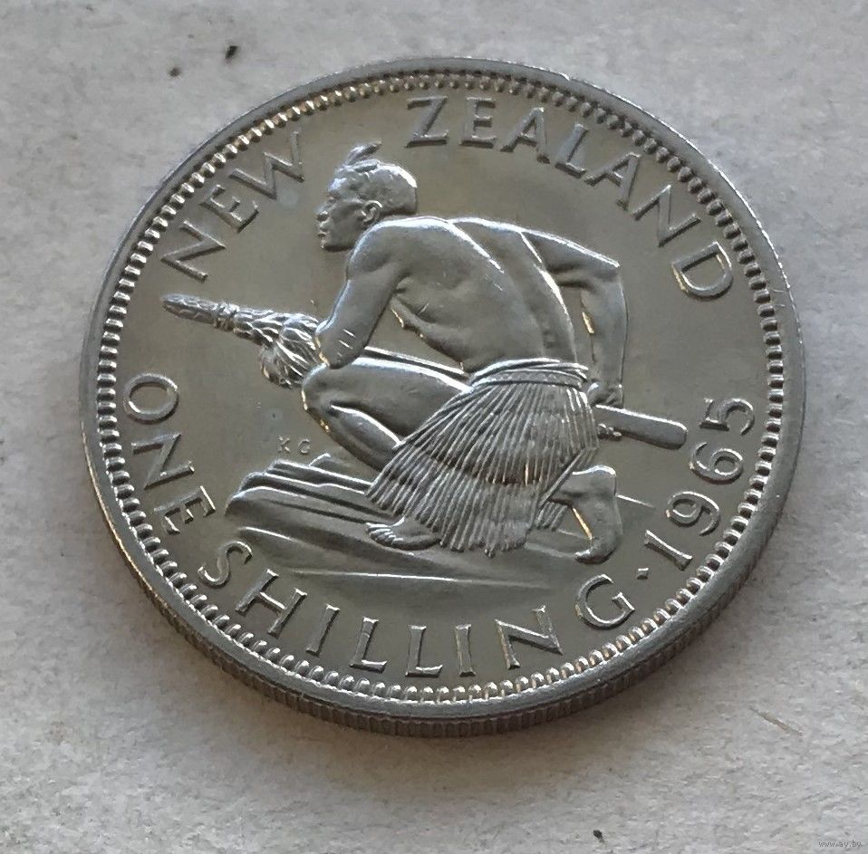Новая Зеландия 1 шиллинг 1965 Елизавета II - штемпельный блеск, последний год чекана!