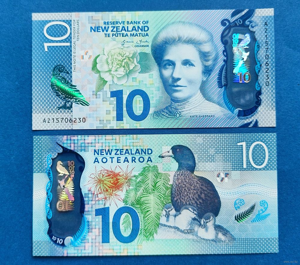 Новая Зеландия, 10 долларов 2015 г, P-192 (AZ, полимер, суфражистка Кейт Шеппард, голубая утка уио), UNC