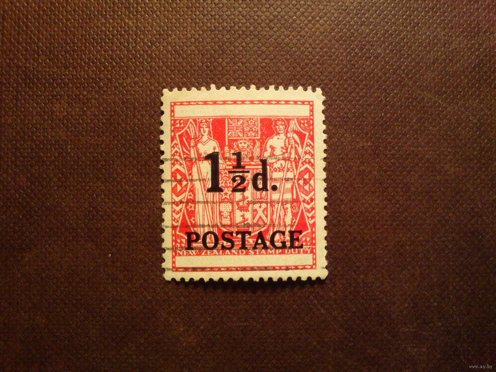 Новая Зеландия 1950 г.Герб.Почтовая фискальная надбавка 1½ пенса.Гашеная .Used.