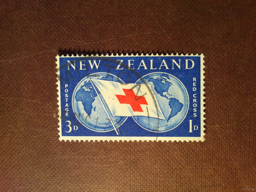 Новая Зеландия 1959 г.Флаг Красного Креста перед земным шаром.Гашеная .Used.