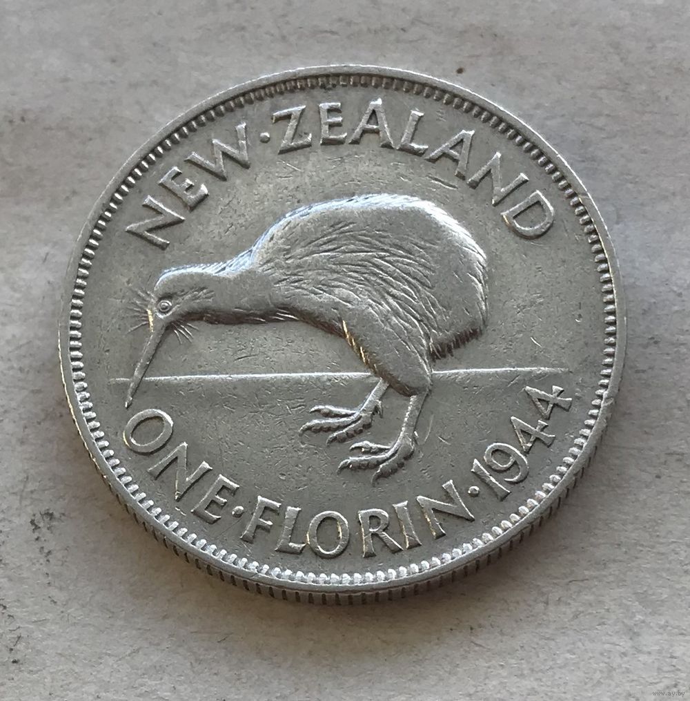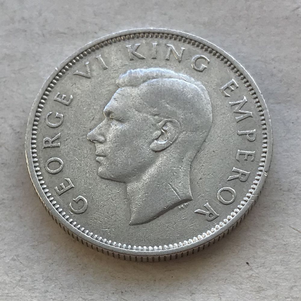 Новая Зеландия 2 шиллинга (флорин) 1944 Георг VI - серебро 0,500, редкая, тираж 140.000!