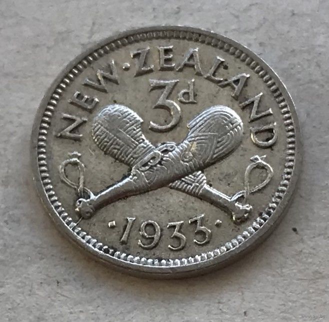 Новая Зеландия 3 пенса 1933 Георг V - серебро 0,500, отличная, первый год чекана!