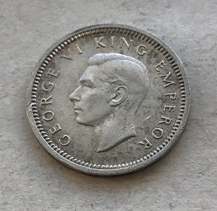 Новая Зеландия 3 пенса 1940 Георг VI - серебро 0,500, отличная!