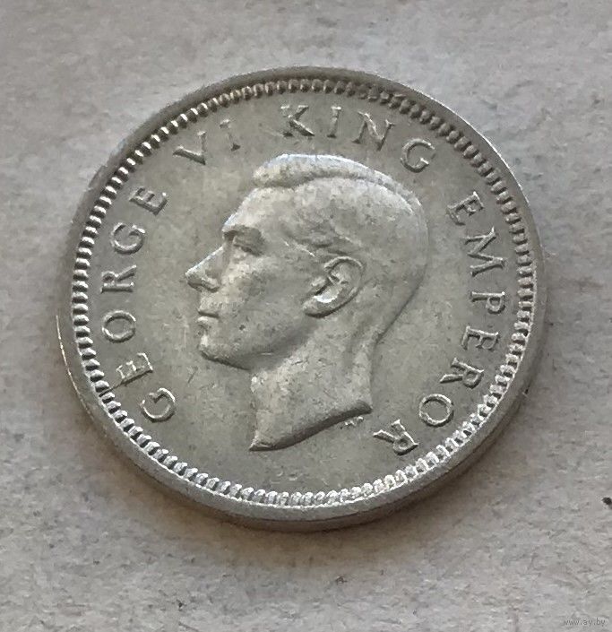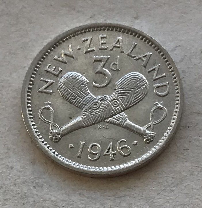 Новая Зеландия 3 пенса 1946 Георг VI - серебро 0,500, отличная!