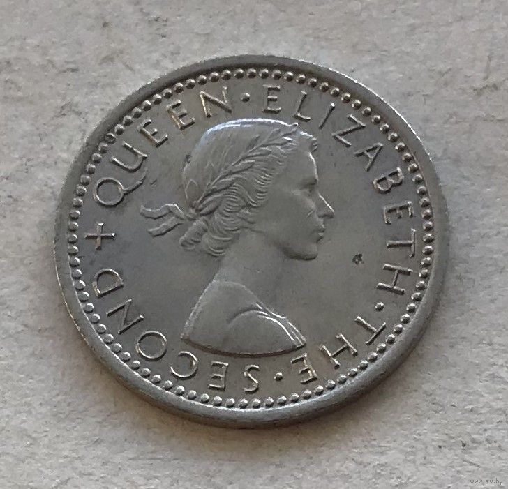 Новая Зеландия 3 пенса 1965 Елизавета II - последний год чекана!