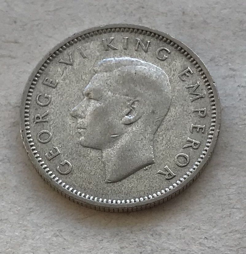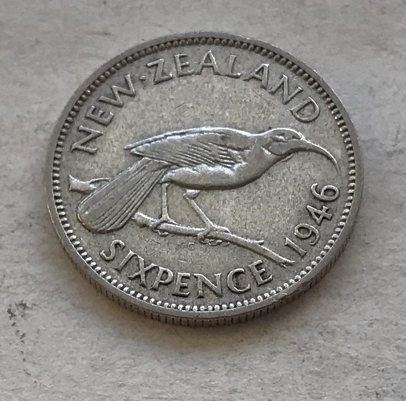 Новая Зеландия 6 пенсов 1946 Георг VI - серебро 0,500, последний год чекана в серебре!