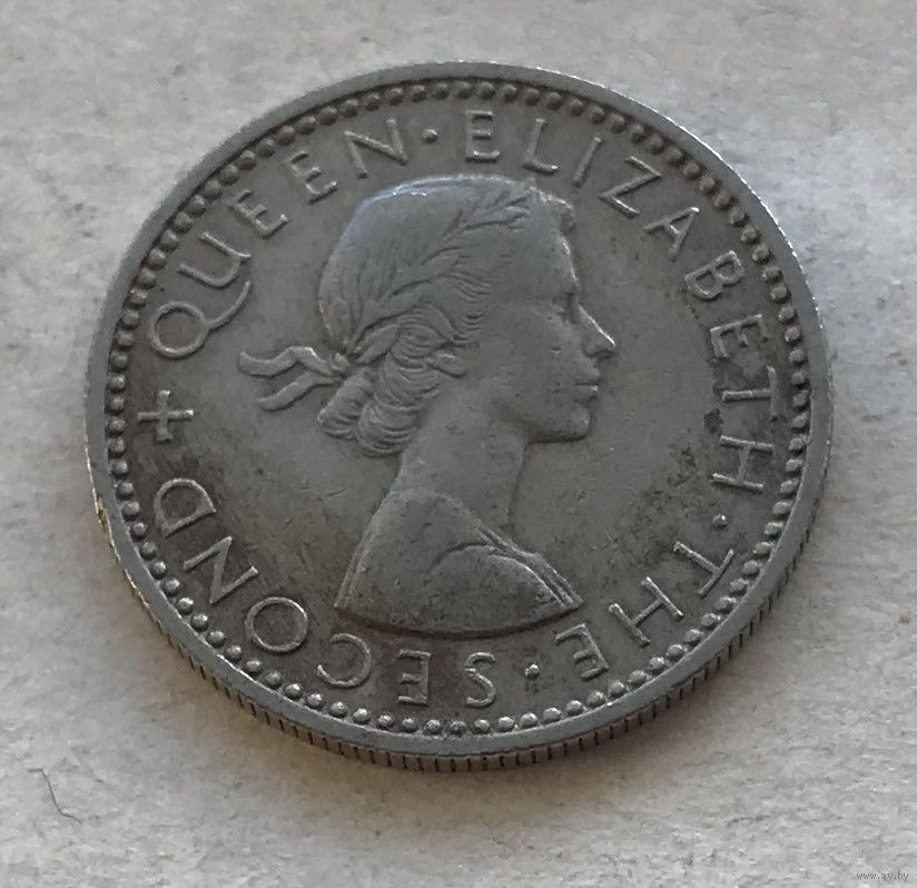 Новая Зеландия 6 пенсов 1957 (с ремнем на плече) птица Гуйя Елизавета II