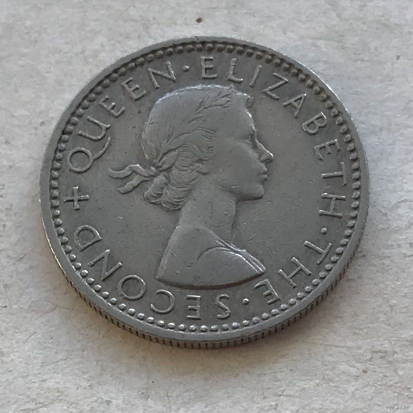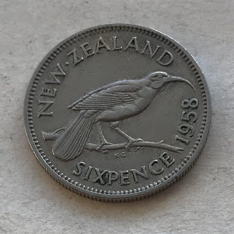 Новая Зеландия 6 пенсов 1958 птица Гуйя Елизавета II