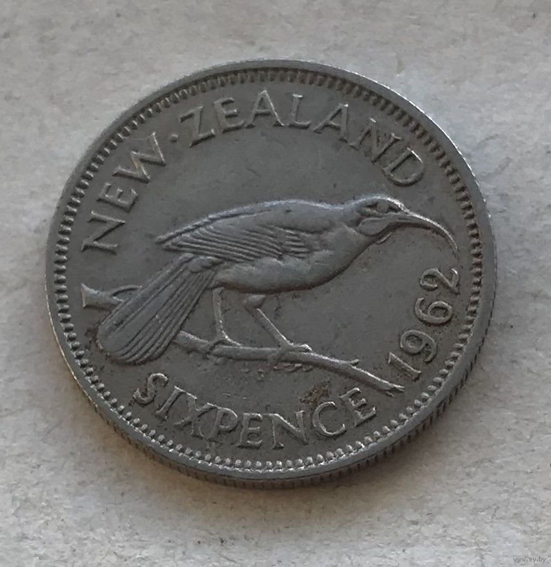 Новая Зеландия 6 пенсов 1962 птица Гуйя Елизавета II