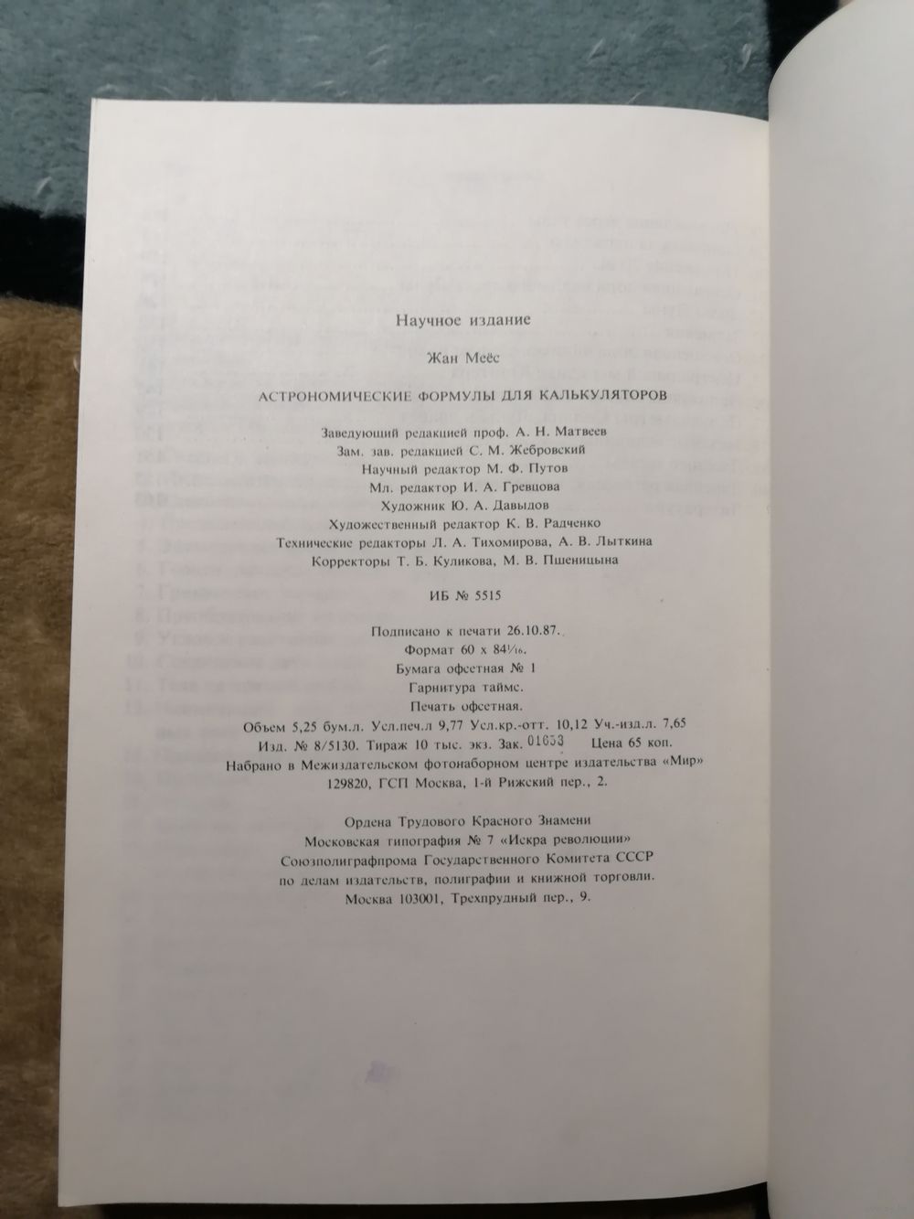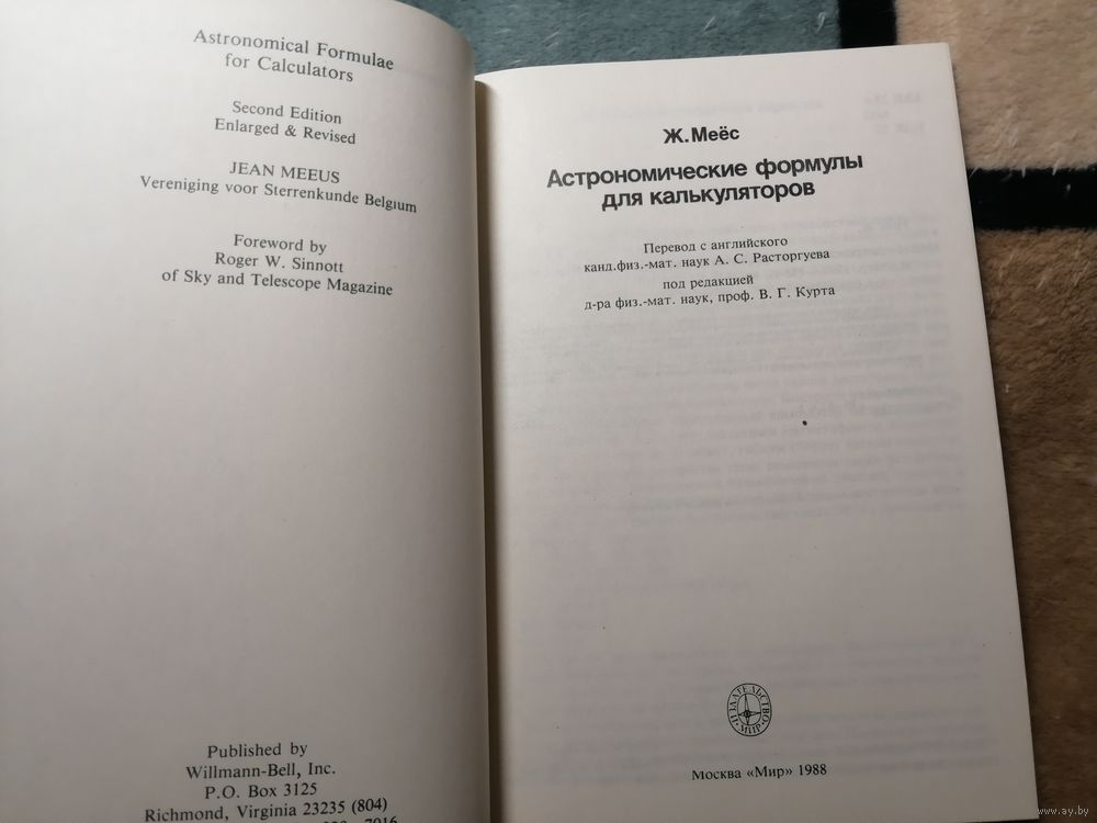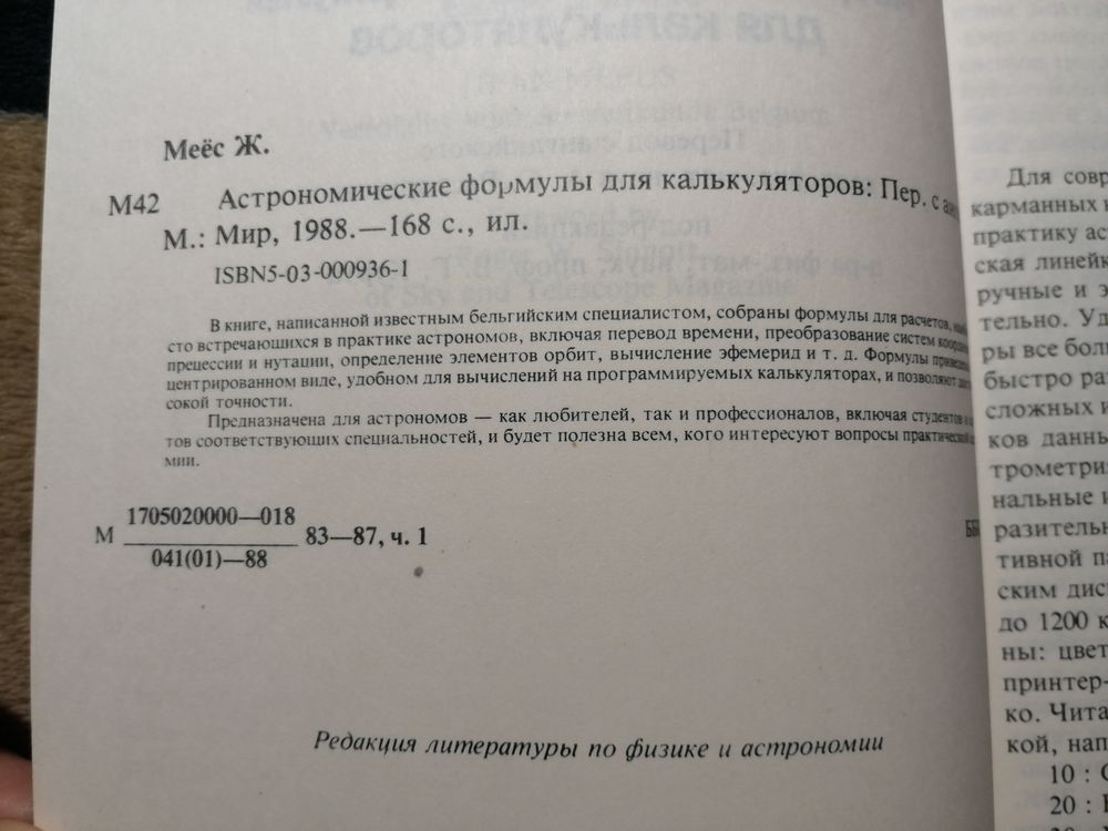 Перевод с англ. канд. физ.-мат. наук А.С. Расторгуева, под ред. д-ра физ.-мат. наук, проф. В.Г. Курта.В книге собраны формулы для расчетов наиболее часто встречающихся в практической астрономии, включая перевод времени, преобразование систем координат, учет прецессии, нутации, определение элементов орбит, вычисление эфемерид и т.д.