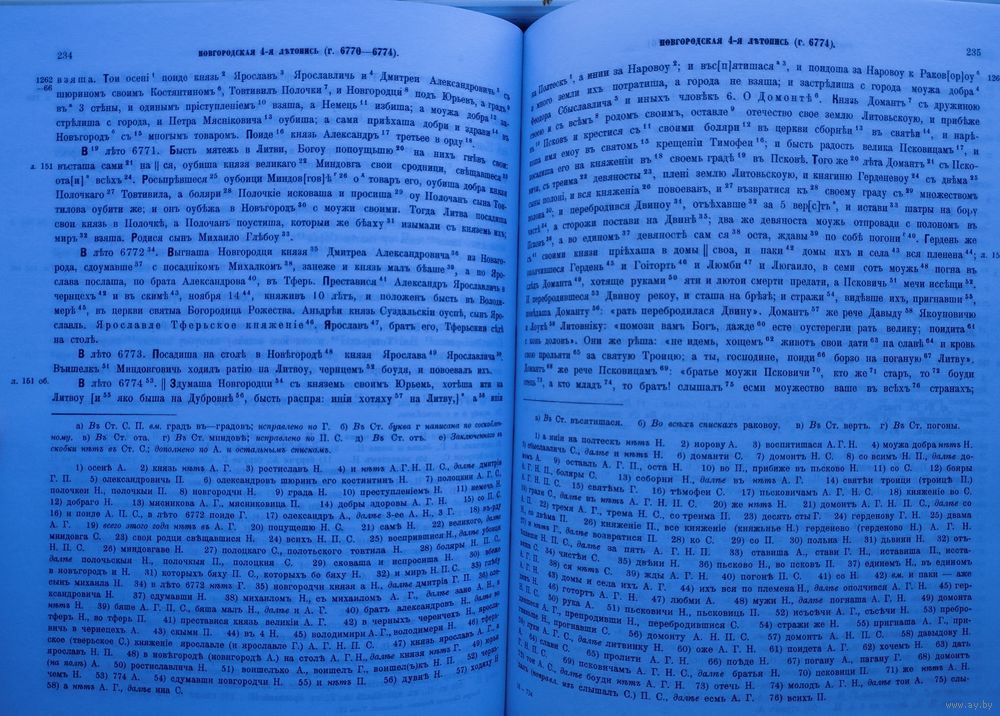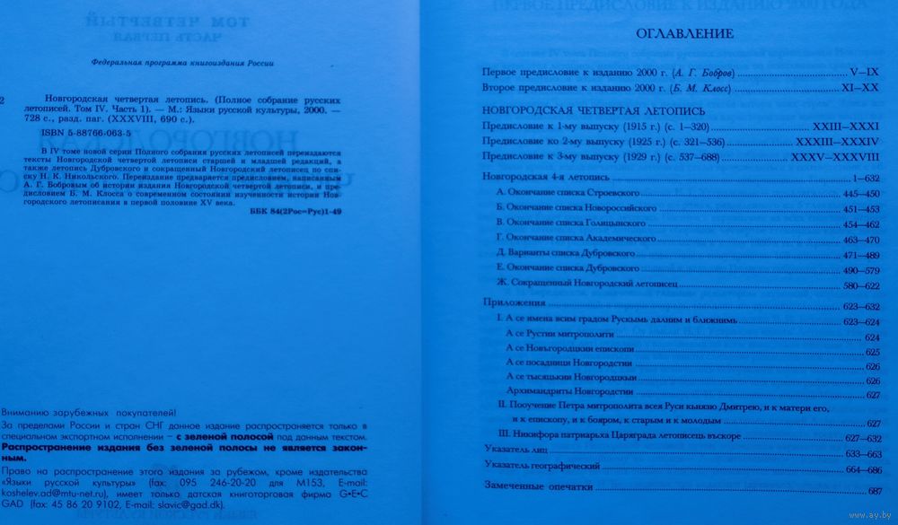 Цена за 1 том. Большой энциклопедический формат. Тираж 2000 экз. 690 стр. В четвертом томе серии Полного собрания русских летописей переиздаются тексты Новгородской четвертой летописи старшей и младшей редакций, а также летопись Дубровского и сокращенный Новгородский летописец по списку Н. К. Никольского. Переиздание предваряется предисловием, написанным А. Г. Бобровым об истории издания Новгородской четвертой летописи, и предисловием Б. К. Клосса о современном состоянии изученности истории Новгородского летописания в первой половине XV века.