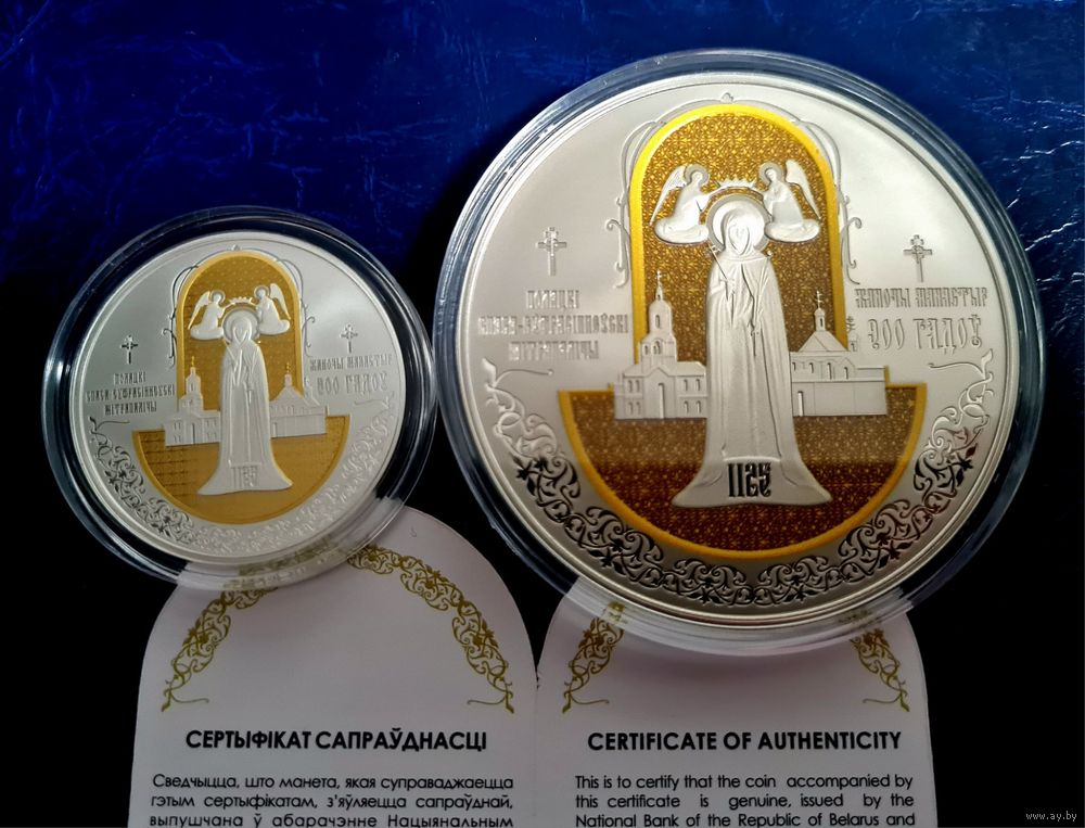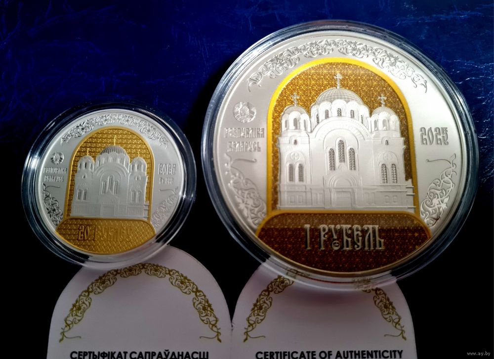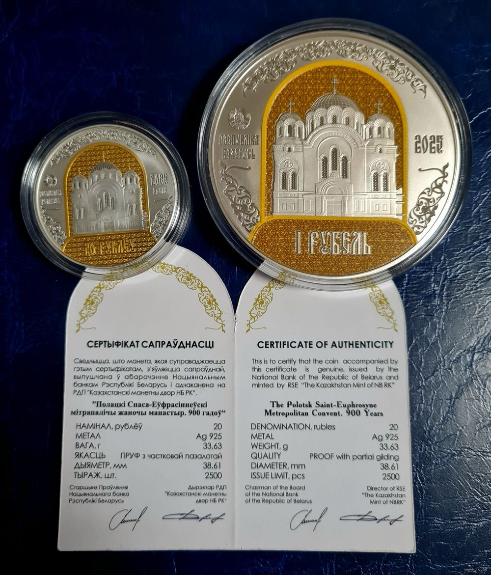 КОМПЛЕКТ:20 рублей 2025 г. СЕРЕБРО.+ 1 рубль Медно-никелевый.Беларусь Полоцкий Спасо-Евфросиниевский митрополичий монастырь. 900 лет.