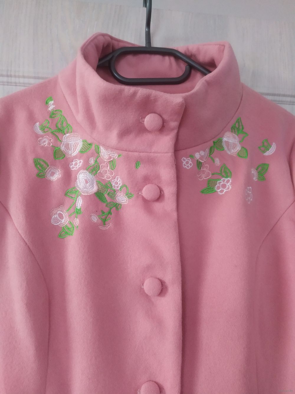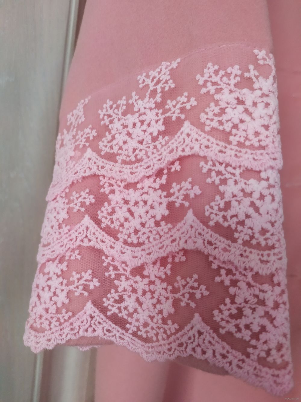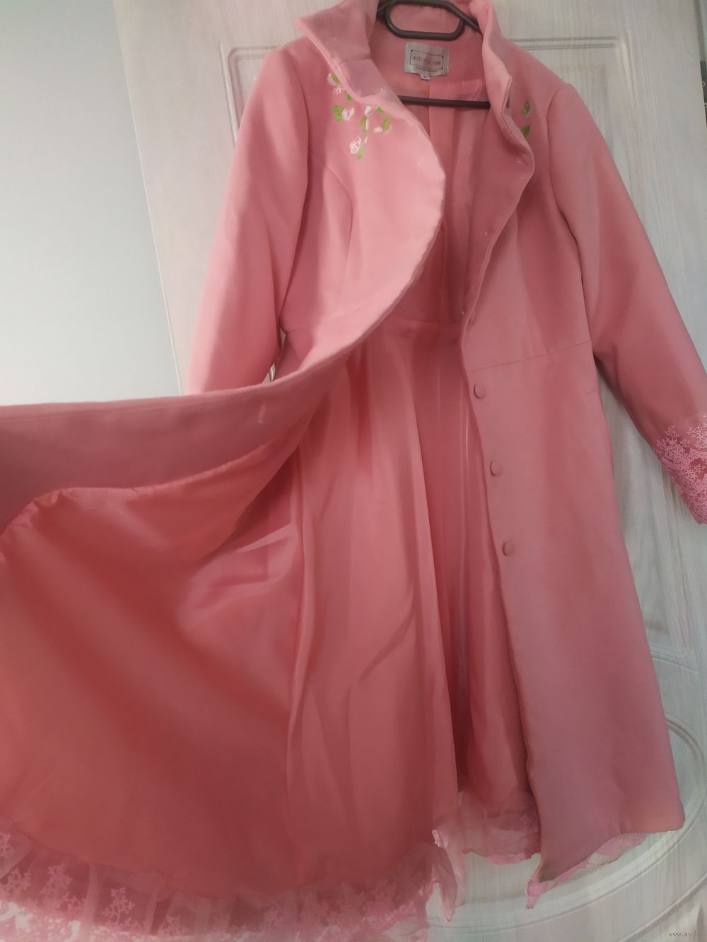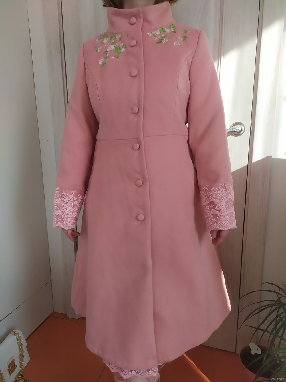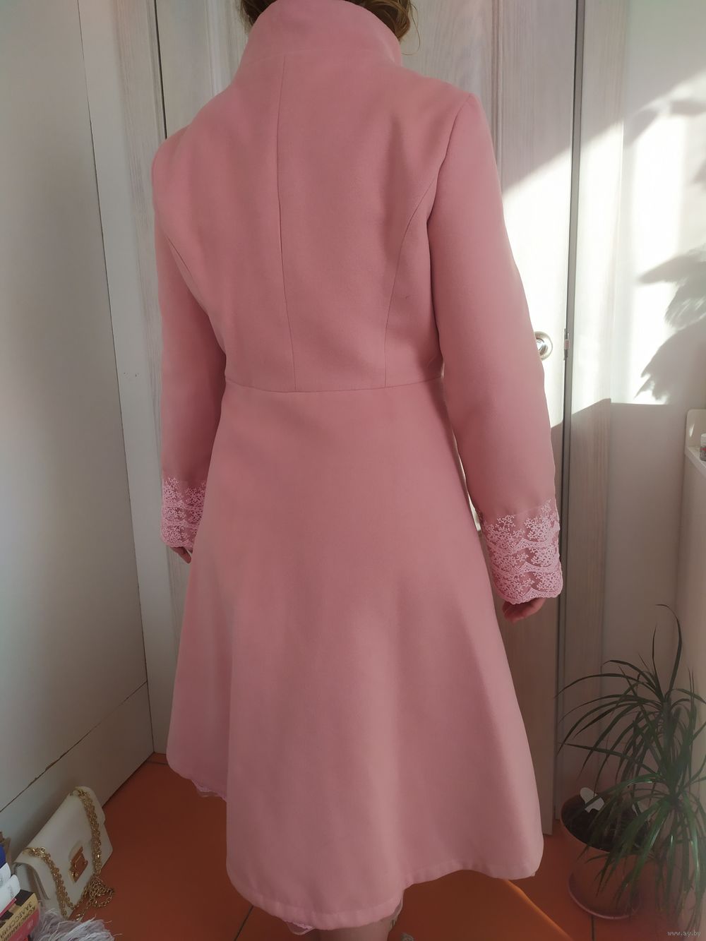 Длина 107см, ПОГ 50см, ПОТ 44см. Очень элегантное пальто, приталенный силуэт и кружева на манжетах и внизу подола придают воздушный и нежный образ!