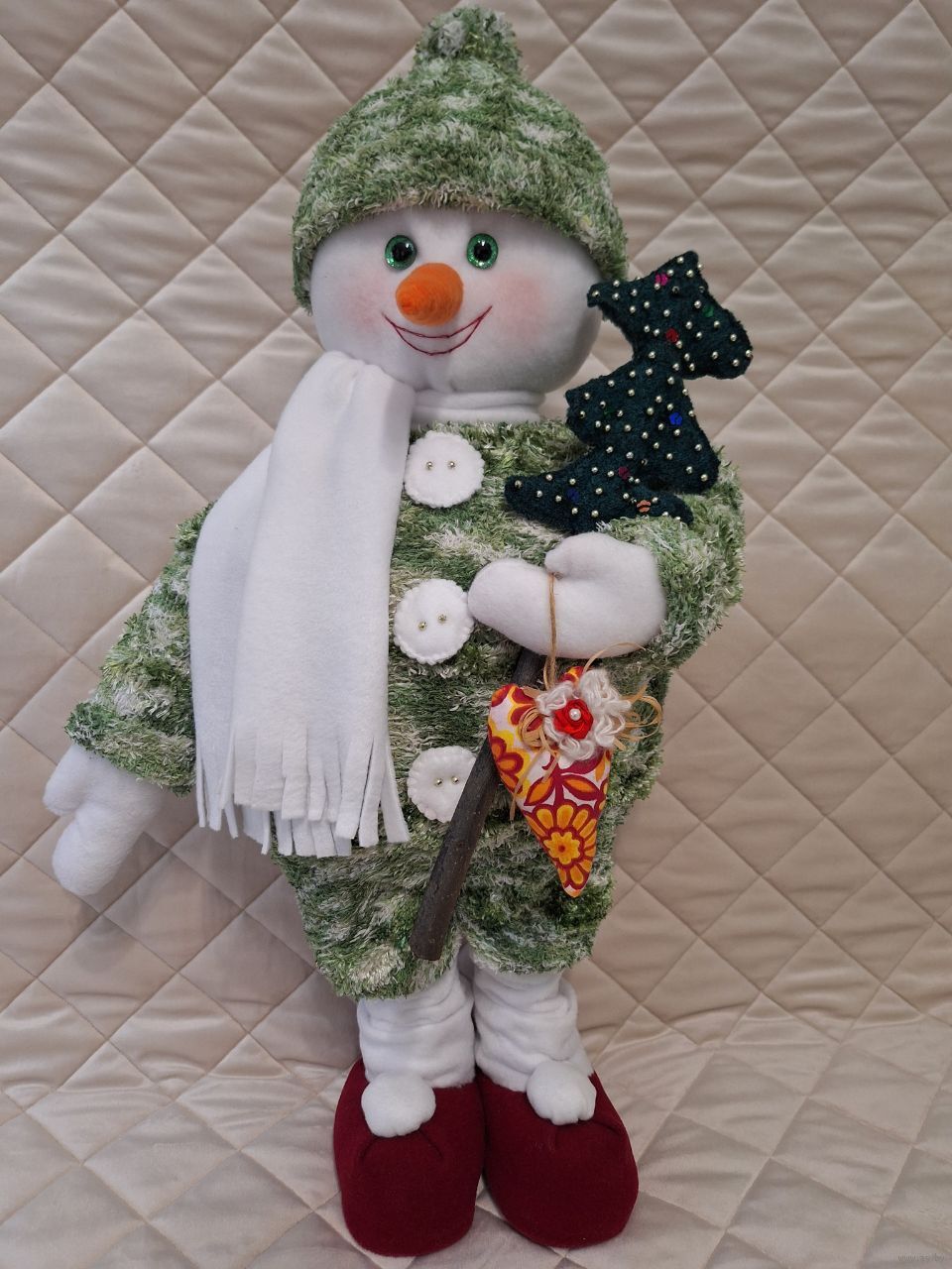 Новогодний снеговик (элемент декора). Новый. Ручная работа. Сделан в единственном экземпляре! Неповторимая атмосфера новогоднего праздника обеспечена! Высота 70 см. Цена за единицу 150 руб. При покупке сразу двух штук - скидка. Возможна почта/Европочта. Почтовые расходы на покупателе.