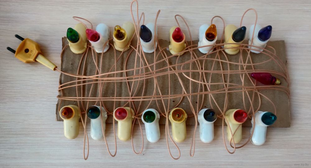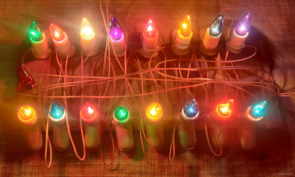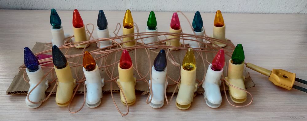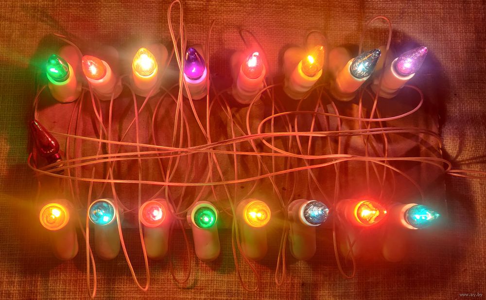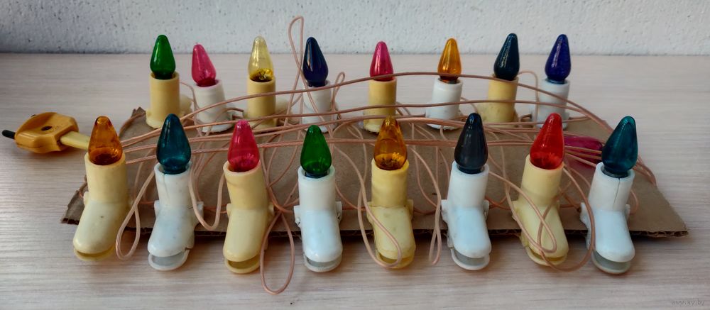 Советская винтажная новогодняя гирлянда, электрогирлянда из СССР на прищепках, 16 лампочек и одна запасная.