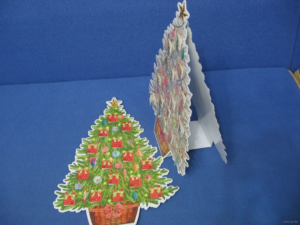 Новогодняя настольная елка Сюрприз, с отрывными окошками- сюрпризами.44х33 см