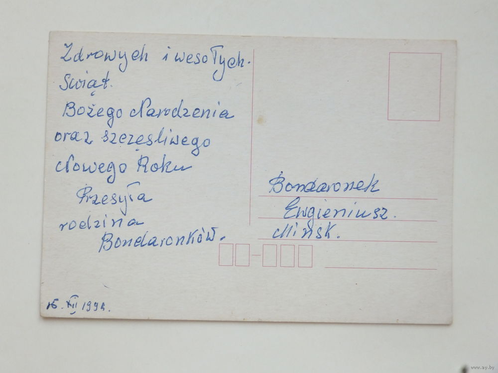 Новогодняя открытка Польша 1990-е 10х15 см