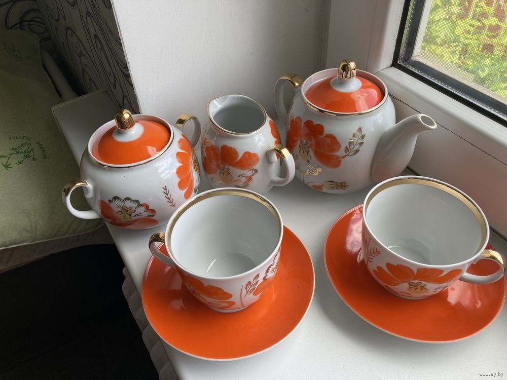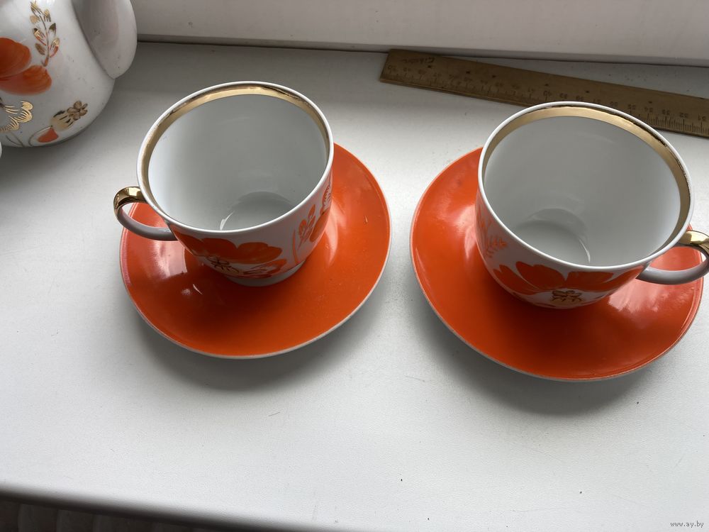 Новогодняя распродажа !КАЧЕСТВЕНННЫЙ !!Редкий старинный чайный сервиз маки фарфор СССР барановка Барановский фарфоровый завод на 8 пар(ПЕРСОН)
