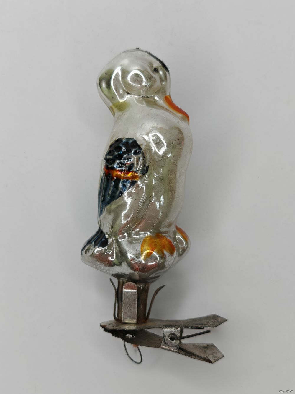 Новогодняя ёлочная игрушка СССР "Селезень" на прищепке. С рубля