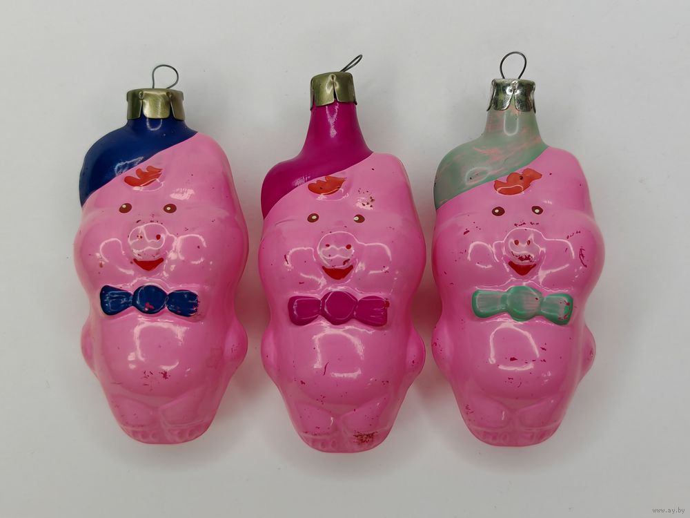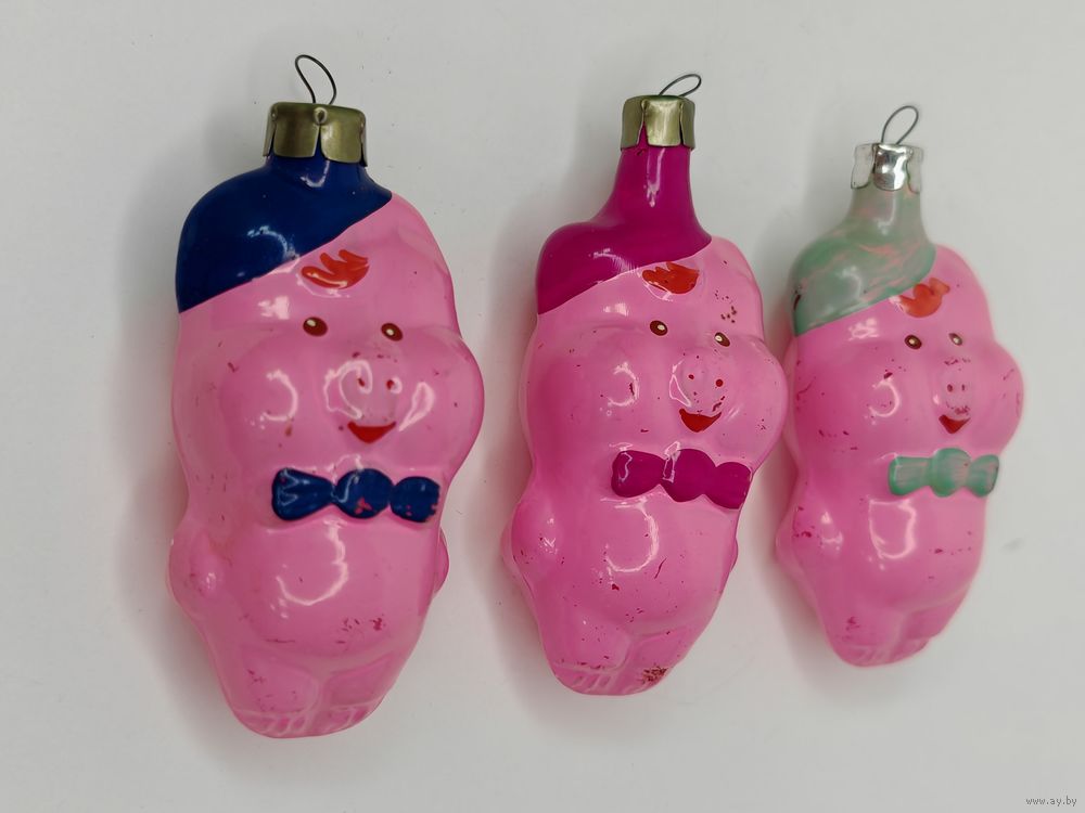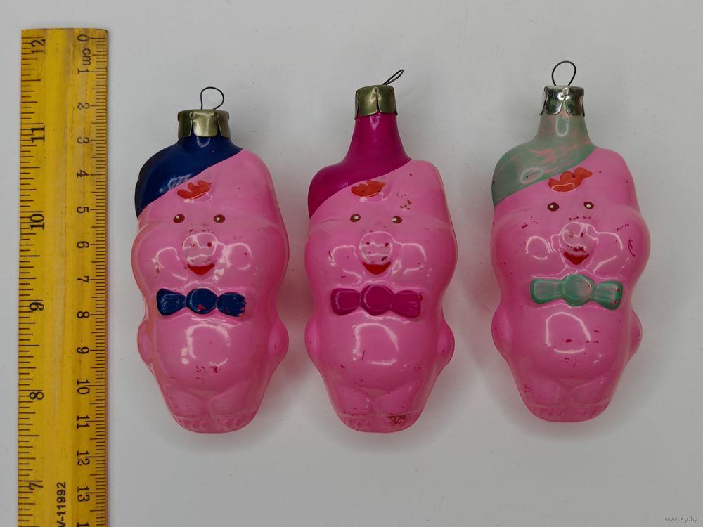 Новогодняя ёлочная игрушка СССР "Три поросёнка". С рубля