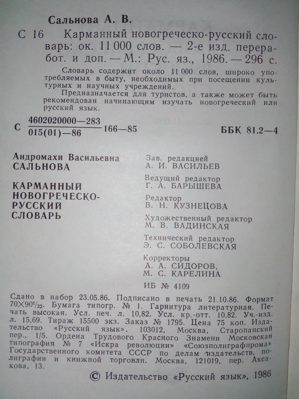 Карманный Новогреческо-русский словарь 11.000 слов, 1986 г