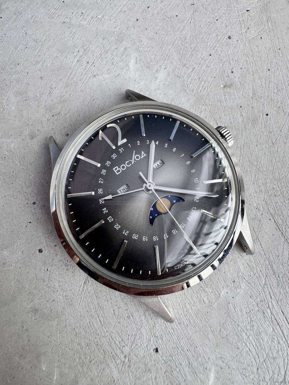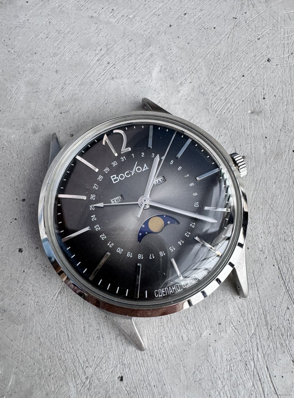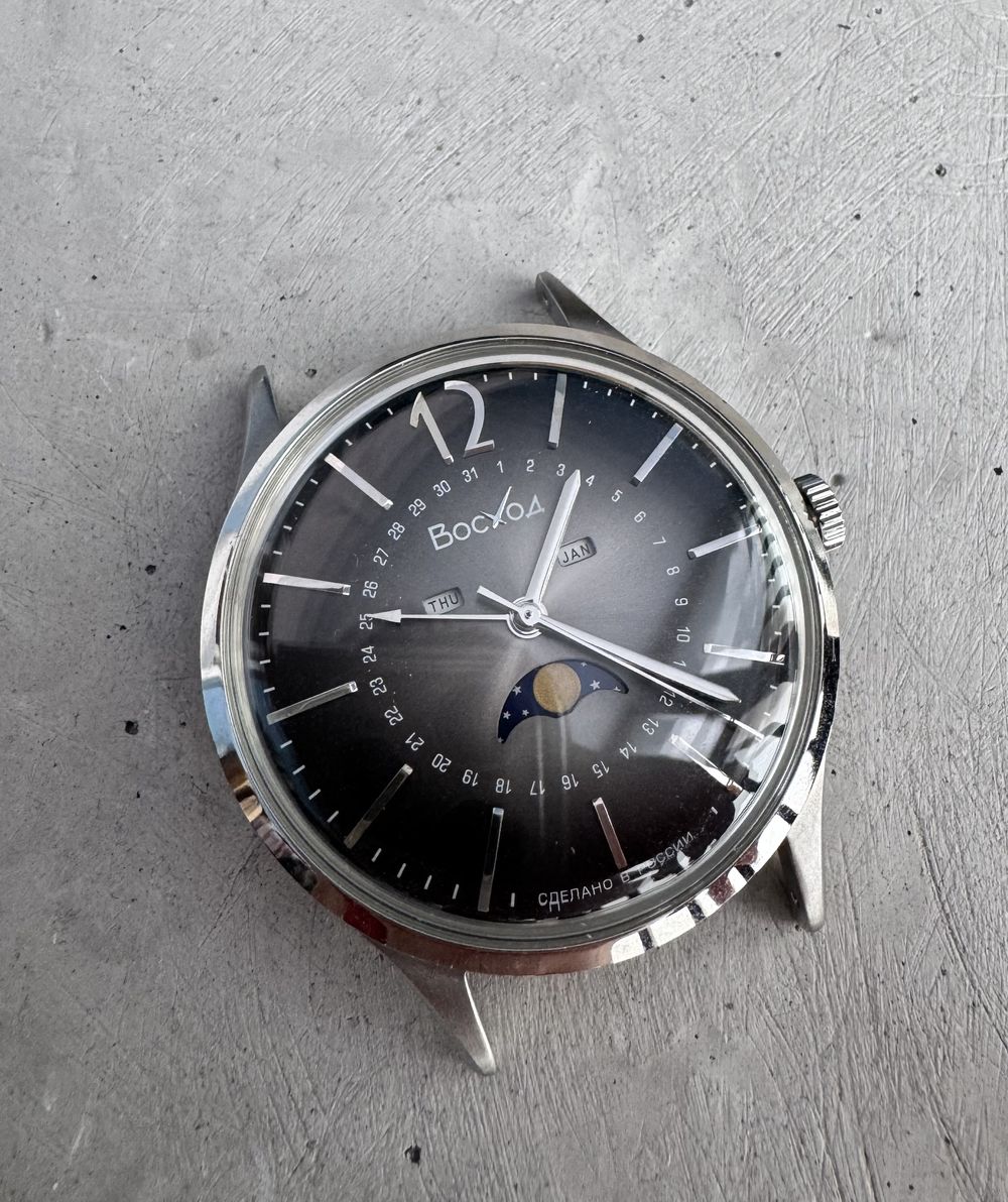 Мужские наручные часы Восход В 337.21.31 в стальном корпусе с циферблатом цвета "Чугун" и куполообразным стеклом. Кварцевые часы с оригинальной разметкой даты по окружности циферблата и лунным календарем, защита от воды 5 атм - это значит, что они не боятся контакта с водой, однако, не стоит в них плавать или принимать душ. данная модель подойдут как на женскую, так и мужскую руку, благодаря универсальному размеру циферблата. Часы Восход сделаны в России.