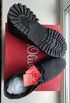 Размер 43, возможно подойдут на размер или полразмера меньше в зависимости от полноты стопы. Стелька приклеена, примерно 280 мм.