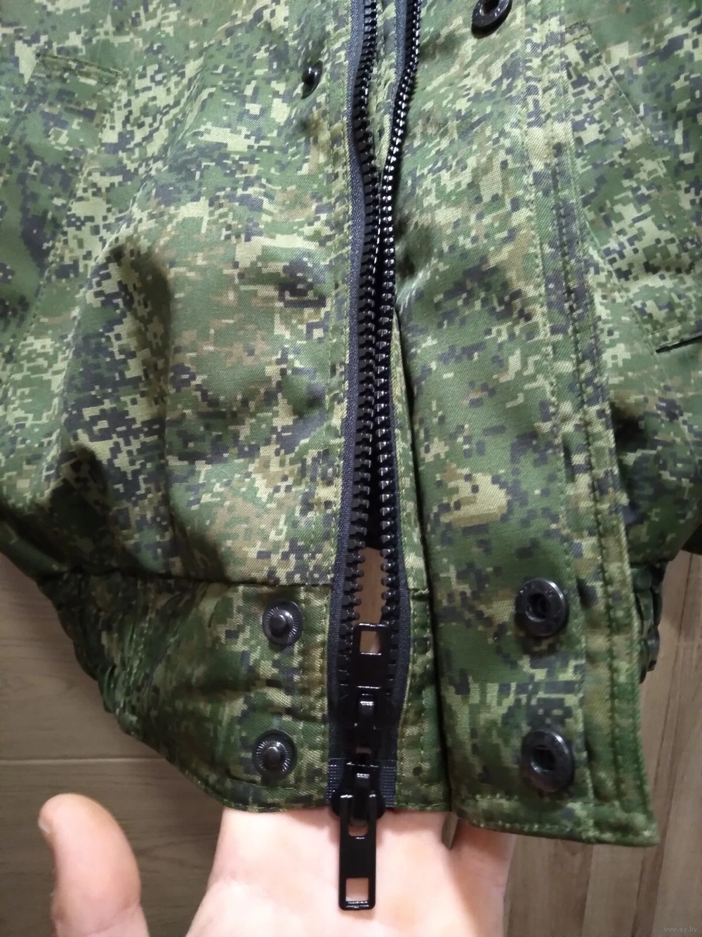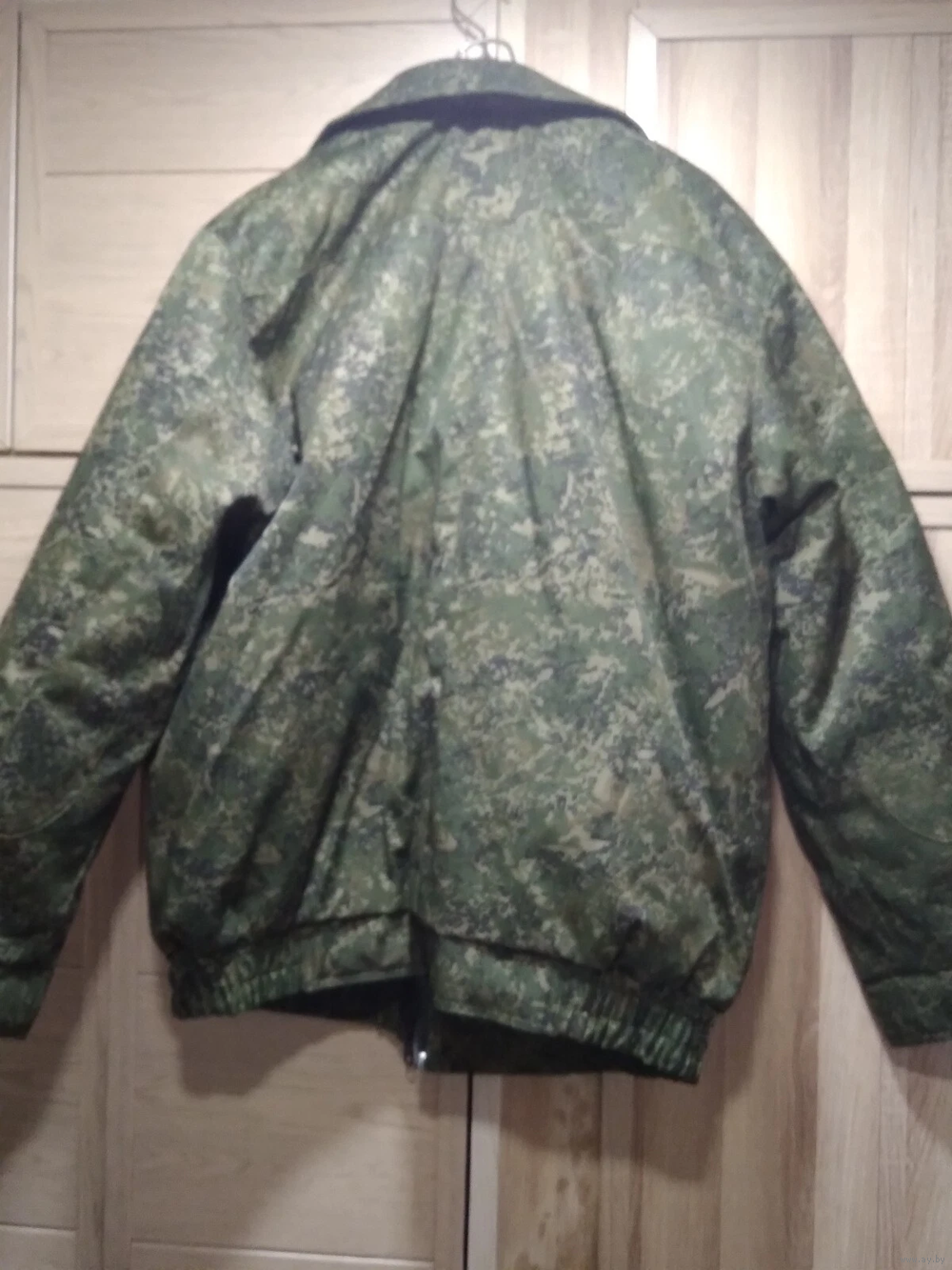 Размер 176-96-100 50/4. Ширина плеч 57 сантиметров. Ширина груди 68 см. Ширина талии 57 см + резинка. Длина переда 69 см. Длина рукава от плечевого шва 65 см. Два нагрудных кармана на липучке. Два боковых открытых кармана. Два внутренних кармана на кнопках. Материал подкладки хлопок. Металлические пуговицы на рукавах и молнии. Двойная молния. Очень теплая куртка на осень.