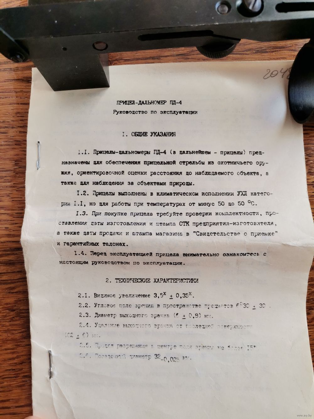 "Дальномер ПД-4-01 предназначен для ориентировочной оценки расстояния до наблюдаемого обьекта, а также для наблюдения за обьектами природы"