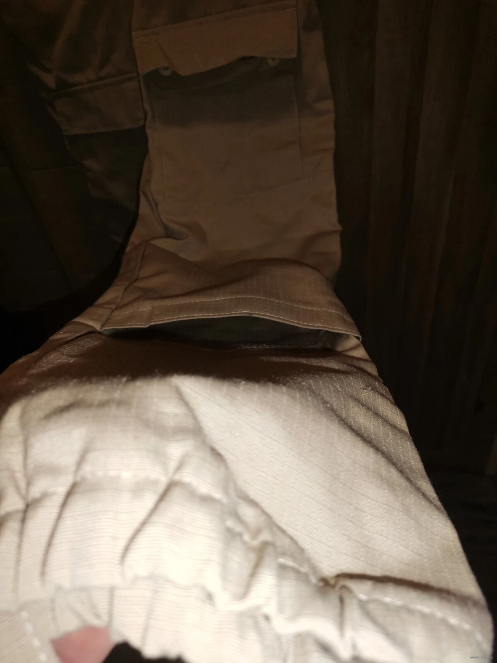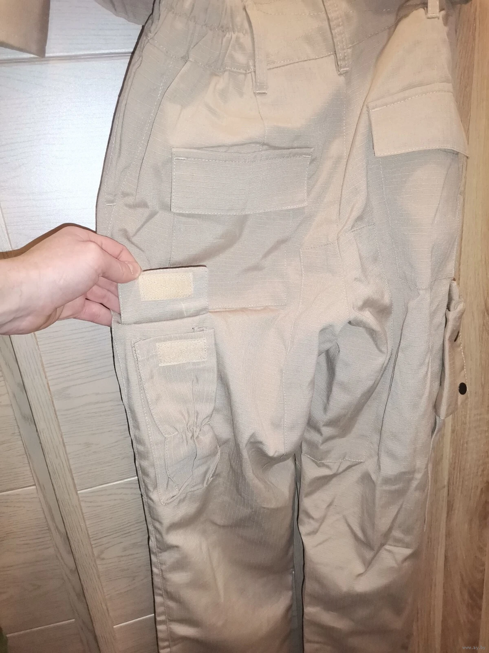 На брюках 8 карманов. Два сзади, два боковых открытых кармана, два спереди, два сбоку для ножа и рации.