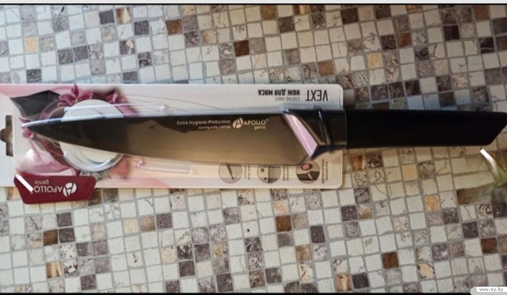 Нож для мяса APOLLO Genio "Vext" 17,5 см станет прекрасным дополнением на каждой кухне. Он предназначен для нарезки овощей, фруктов, мяса, рыбы, сыра, колбасы, хлеба и других продуктов. Лезвие ножа "Vext" имеет стойкое антибактериальное покрытие, которое уменьшает контакт продуктов со сталью, предотвращая процесс окисления и помогая сохранить полезные свойства продуктов. Специальная форма рукоятки не позволяет ножу выскальзывать из руки во время использования.