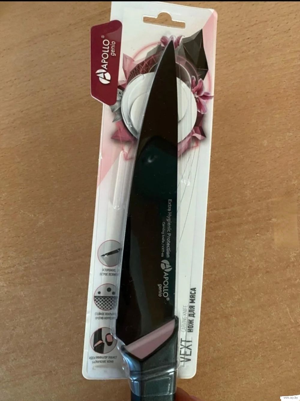 Нож для мяса APOLLO Genio "Vext" 17,5 см станет прекрасным дополнением на каждой кухне. Он предназначен для нарезки овощей, фруктов, мяса, рыбы, сыра, колбасы, хлеба и других продуктов. Лезвие ножа "Vext" имеет стойкое антибактериальное покрытие, которое уменьшает контакт продуктов со сталью, предотвращая процесс окисления и помогая сохранить полезные свойства продуктов. Специальная форма рукоятки не позволяет ножу выскальзывать из руки во время использования.