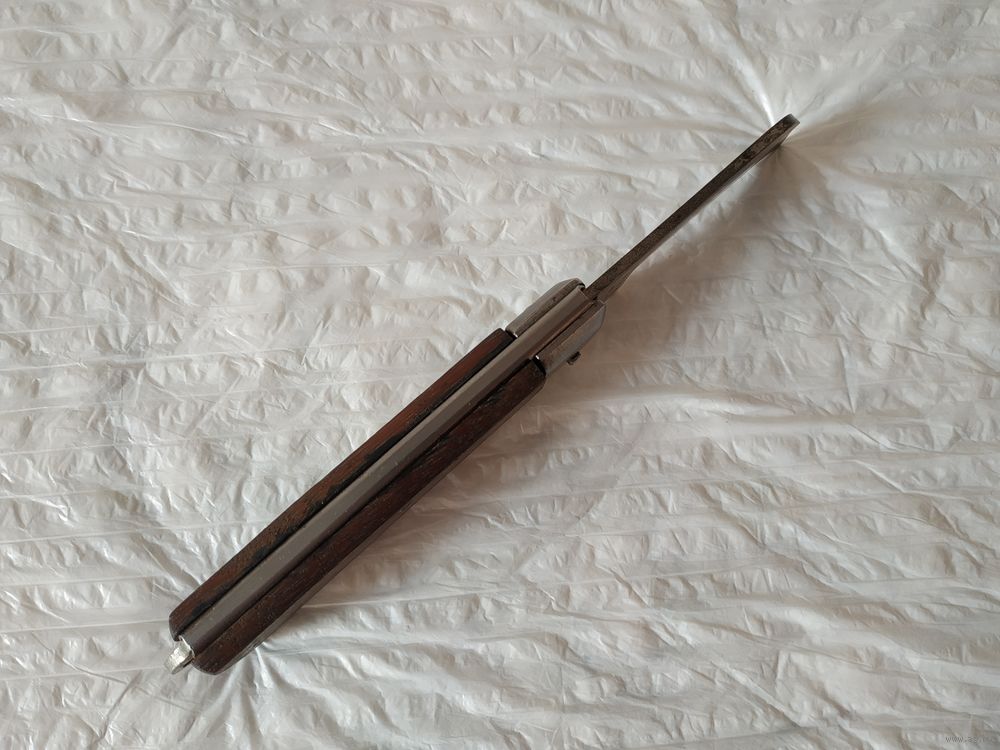 Общая длина ножа в раскрытом положении - 19 см , в закрытом положении - 12 см . Длина клинка - 7,2 см . Ширина клинка - от 2 до 3 см . Толщина клинка - 3 мм . Вес ножа - 115 г . Материал изготовления клинка - высокотехнологичная нержавеющая сталь марки AUS-10 (440С) . Материалы изготовления элементов ножа - металл. Накладки ножа - деревянные.