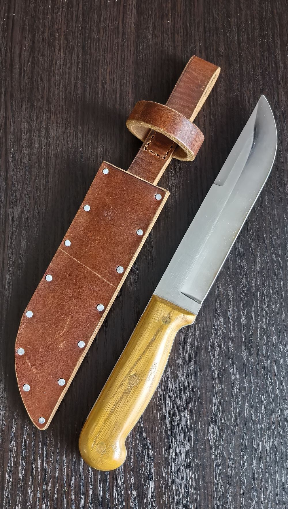 | Нож ручной работы, не юзаный. Чехол из толстой кожи. Прекрасный рез, линза. Состояние на фото. Вопросы до покупки. | |