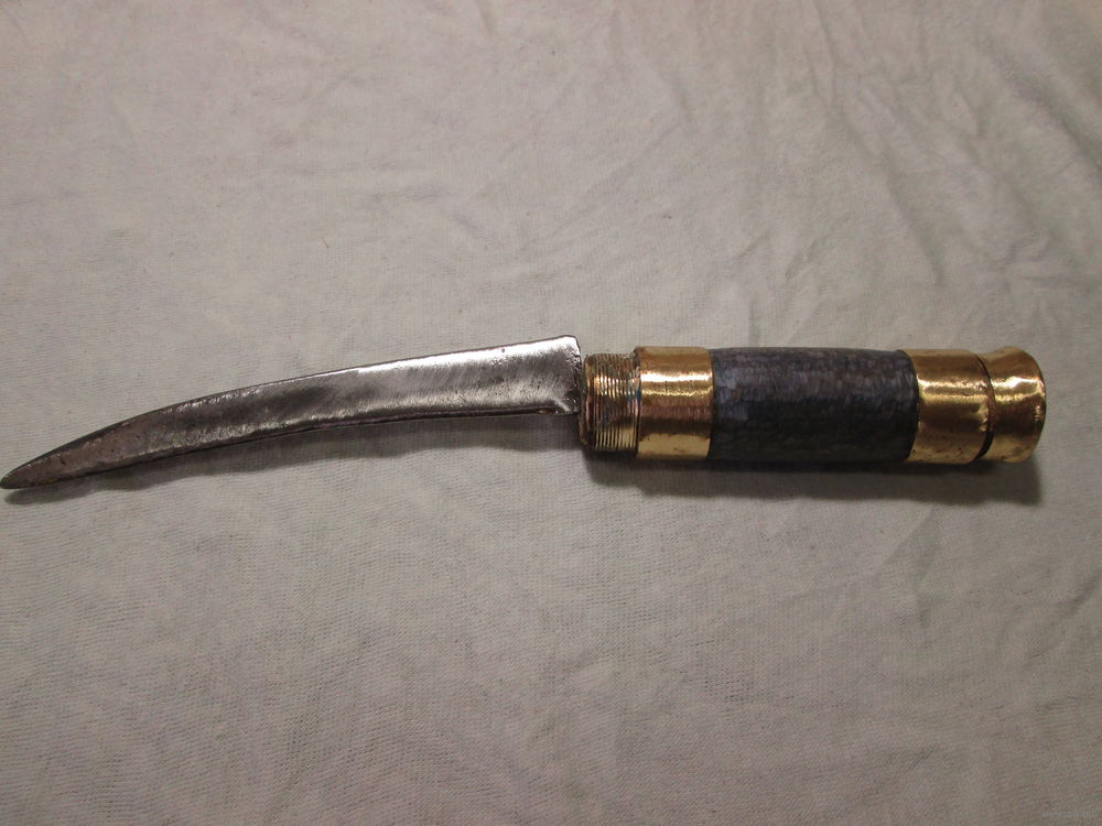 6 ////Нож походный, Ручная работа ,На все случаи жизни ,Очень крепкое лезвие и крепкая мощная рукоять ,Из натуралной бронзы и и какогото очень крепкого материала .Рукояткой можно забивать гвозди .Лезвие режит все ,Нож не является холодным оружием ,Применение для быта,кухни,разделки рыбы ,,заточки карандашей ,Рыбалки ,похода ,И дома на кужне ,Единственный экземпляр .