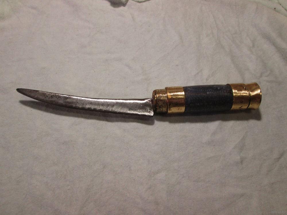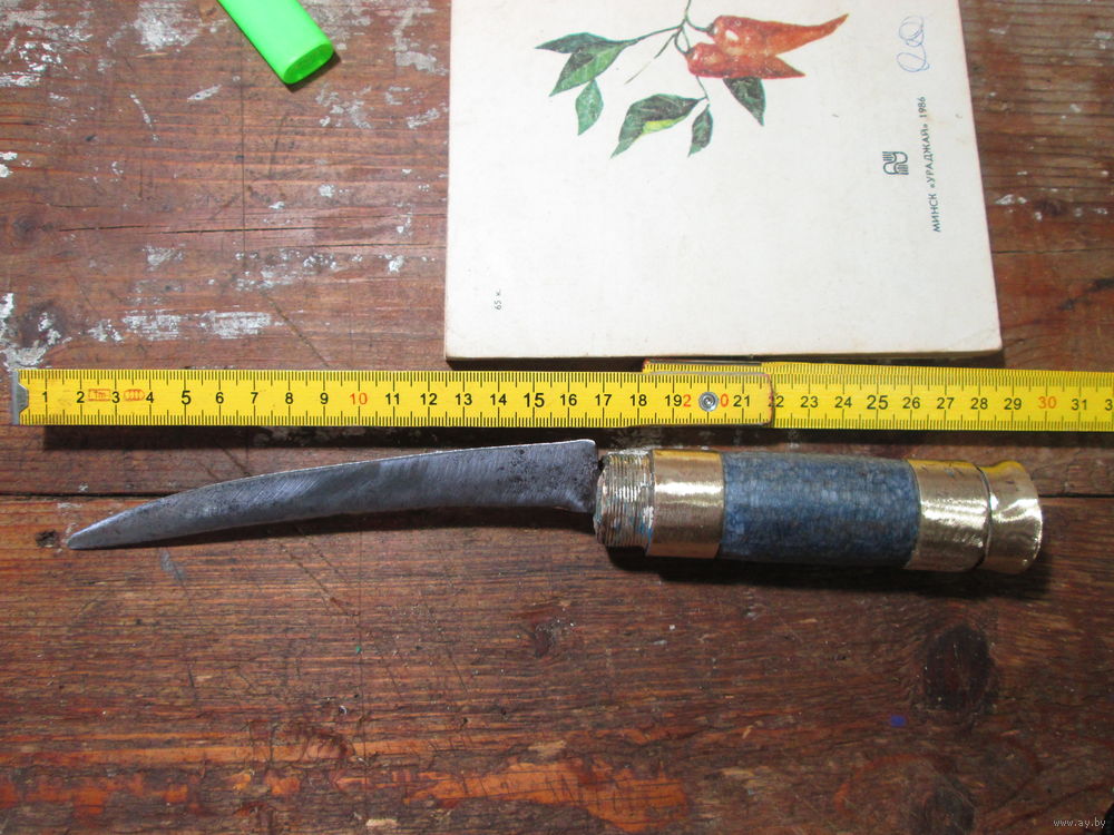6 ////Нож походный, Ручная работа ,На все случаи жизни ,Очень крепкое лезвие и крепкая мощная рукоять ,Из натуралной бронзы и и какогото очень крепкого материала .Рукояткой можно забивать гвозди .Лезвие режит все ,Нож не является холодным оружием ,Применение для быта,кухни,разделки рыбы ,,заточки карандашей ,Рыбалки ,похода ,И дома на кужне ,Единственный экземпляр .