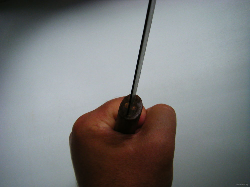 Не является Х.О. Тёплая, удобно лежащая в руке рукоядка. Выполненная из дерева. Длинна 12.5 см. Клинок воронёный, хорошо держит заточку. Длинна 12см. ширина 1,2 см.