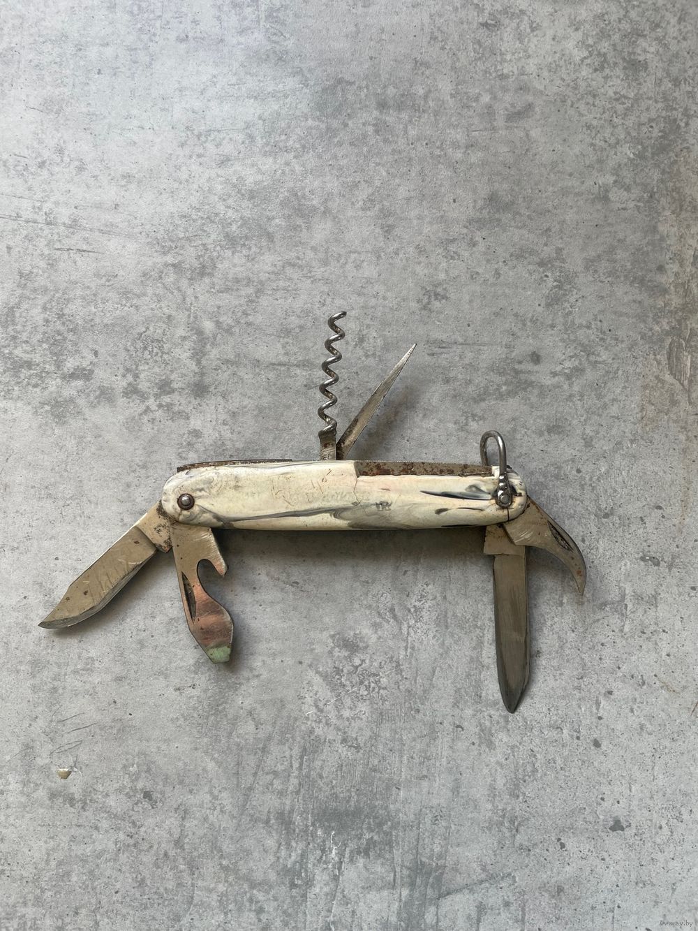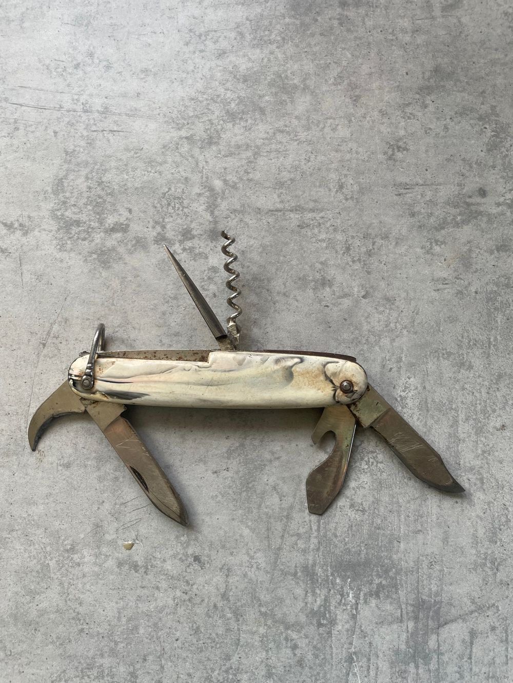 Нож складной перочинный туристический, времен ссср. Много предметный, 6 предметов.
