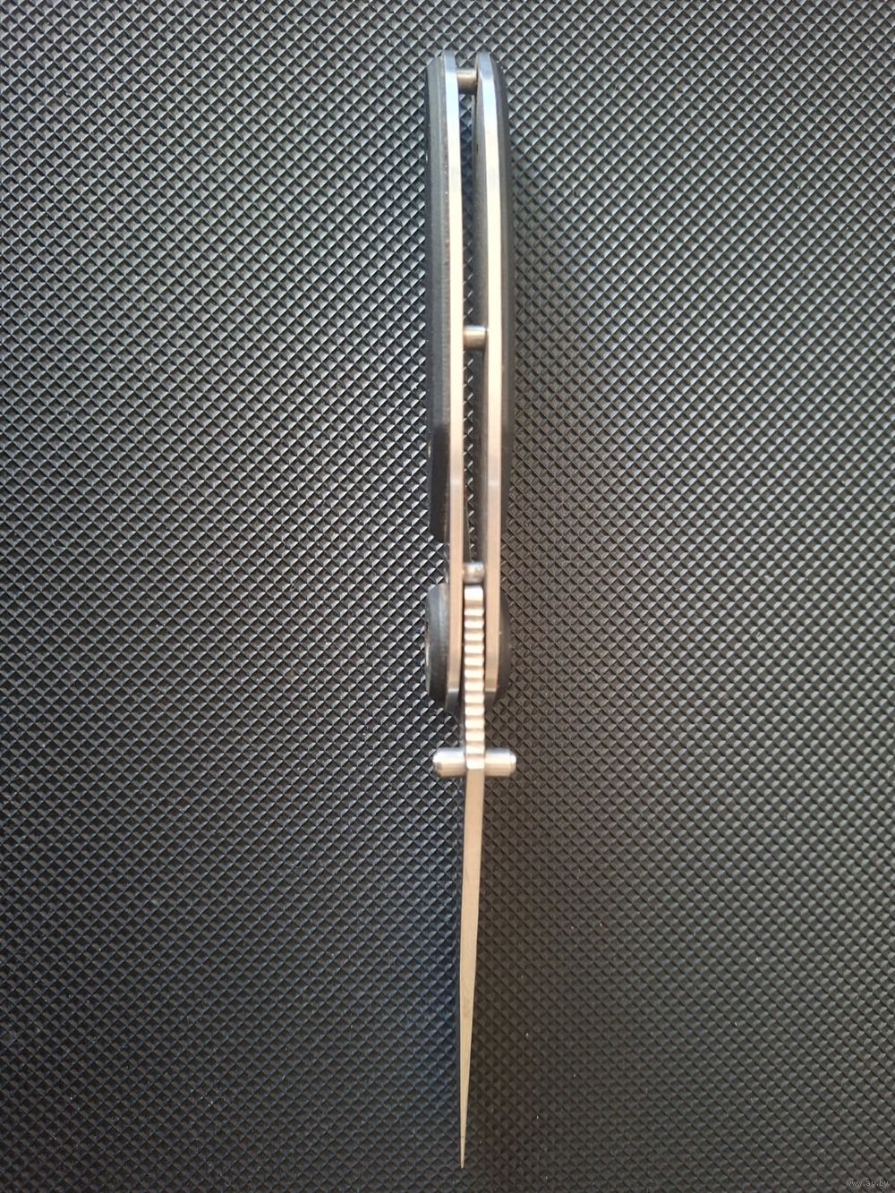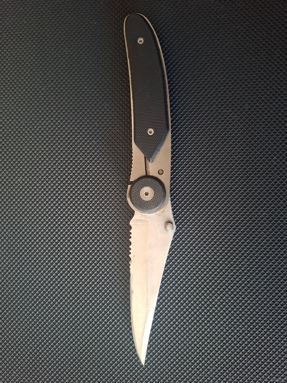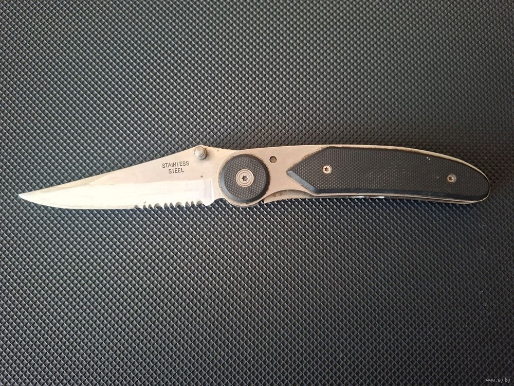 CRKT BladeLock модель Бренд из США, производство Columbia River Knife & Tool (CRK .Нож оснащен уникальной системой блокировки BladeLock, которая фиксирует клинок как в открытом, так и в закрытом состоянии. Для разблокировки нужно нажать на шпенек (пенек на лезвии). нержавеющая сталь AUS 6M; Тип клинка: Walker Clip Point (с частичной серрейторной заточкой .Механизм: Запатентованный замок BladeLock, работающий через нажатие на осевой узел/шпенек. Благодаря системе BladeLock (лезвие намертво фиксируется и в открытом, и в закрытом состоянии) нож очень надежен, что ценится туристами и охотниками. Нож выпускался в 2000-х годах..Производство этой классической версии было прекращено ориентировочно в 2005–2007 годах.