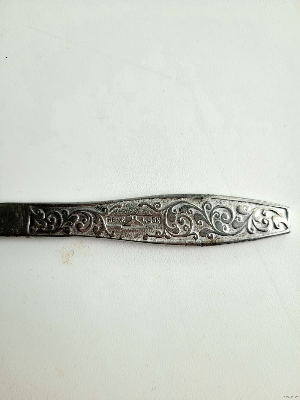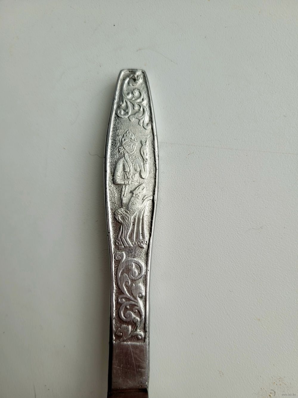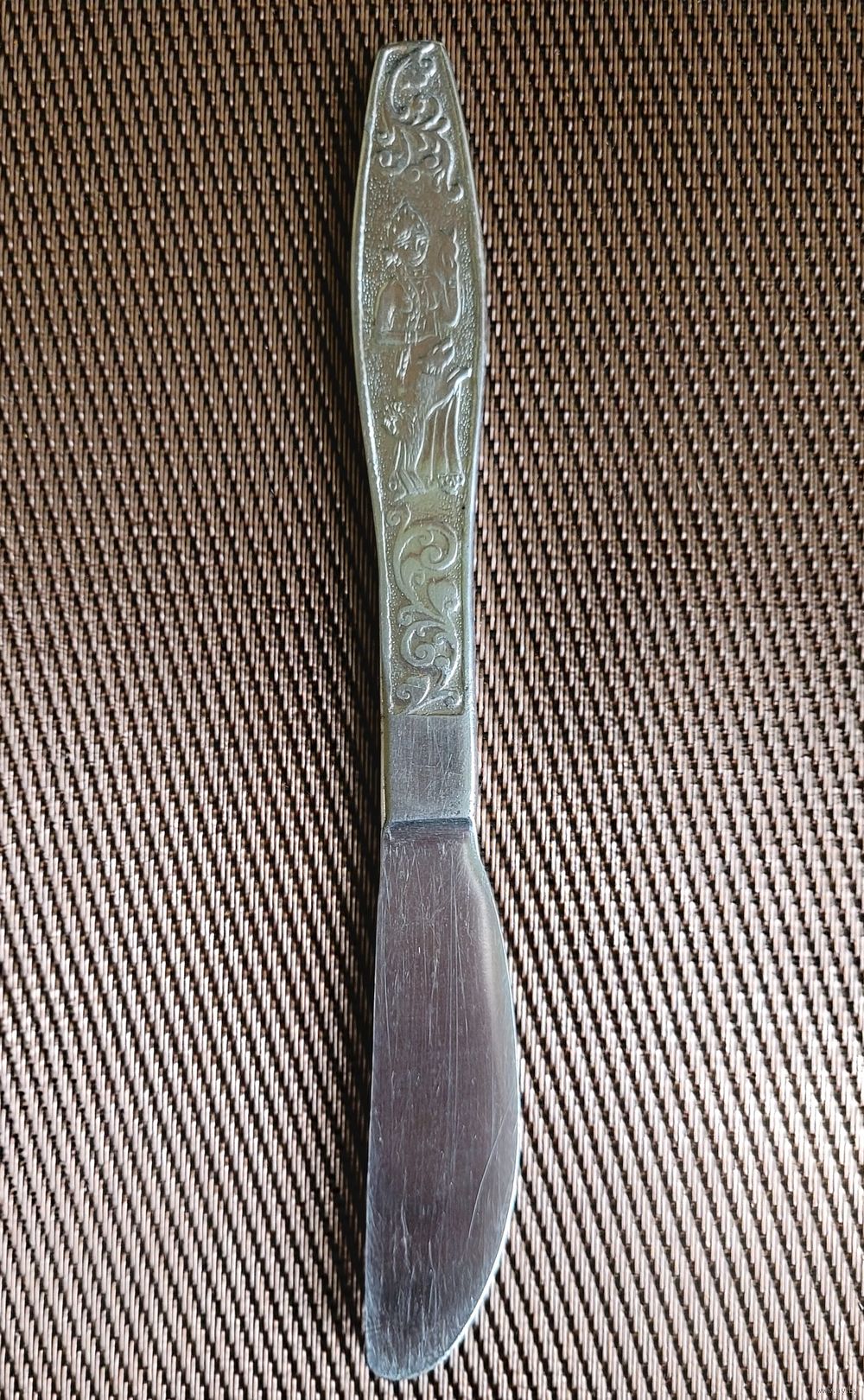 Нож столовый детский, 17 см, нержавеющая сталь, художественное оформление ручки по мотивам сказки Пушкина. Нытвенский металлический завод, период СССР.