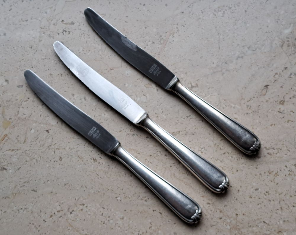 Нож столовый посеребренный BSF Platura Inox Германия ХХ век 3 штуки 21.5 см., возможна продажа поштучно.