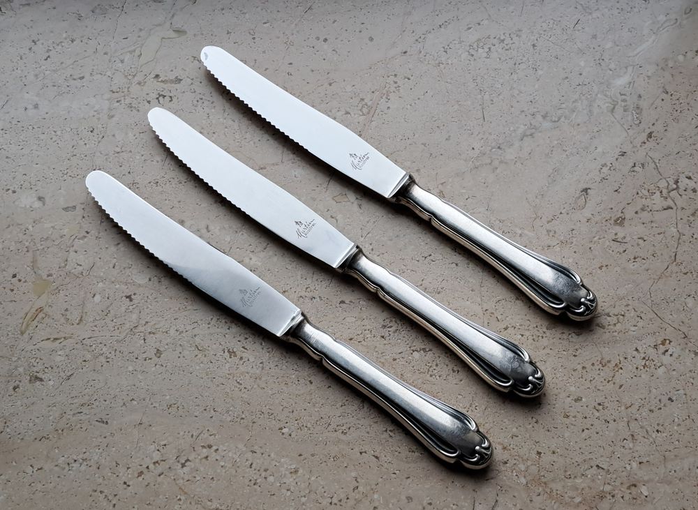 Нож столовый посеребренный Martin Rostfrei Германия ХХ век 3 штуки 21.7 см., возможна продажа поштучно.