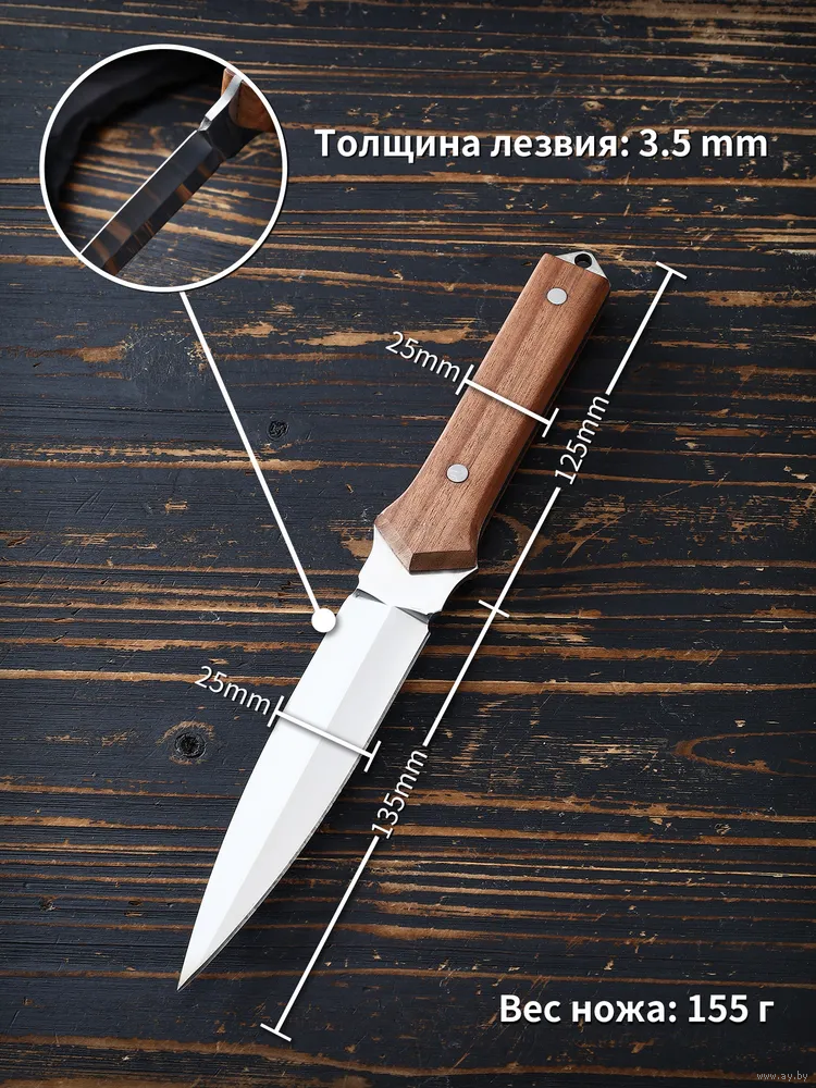 Общая длина, см26Длина лезвия, см13.5Толщина лезвия, мм3.5