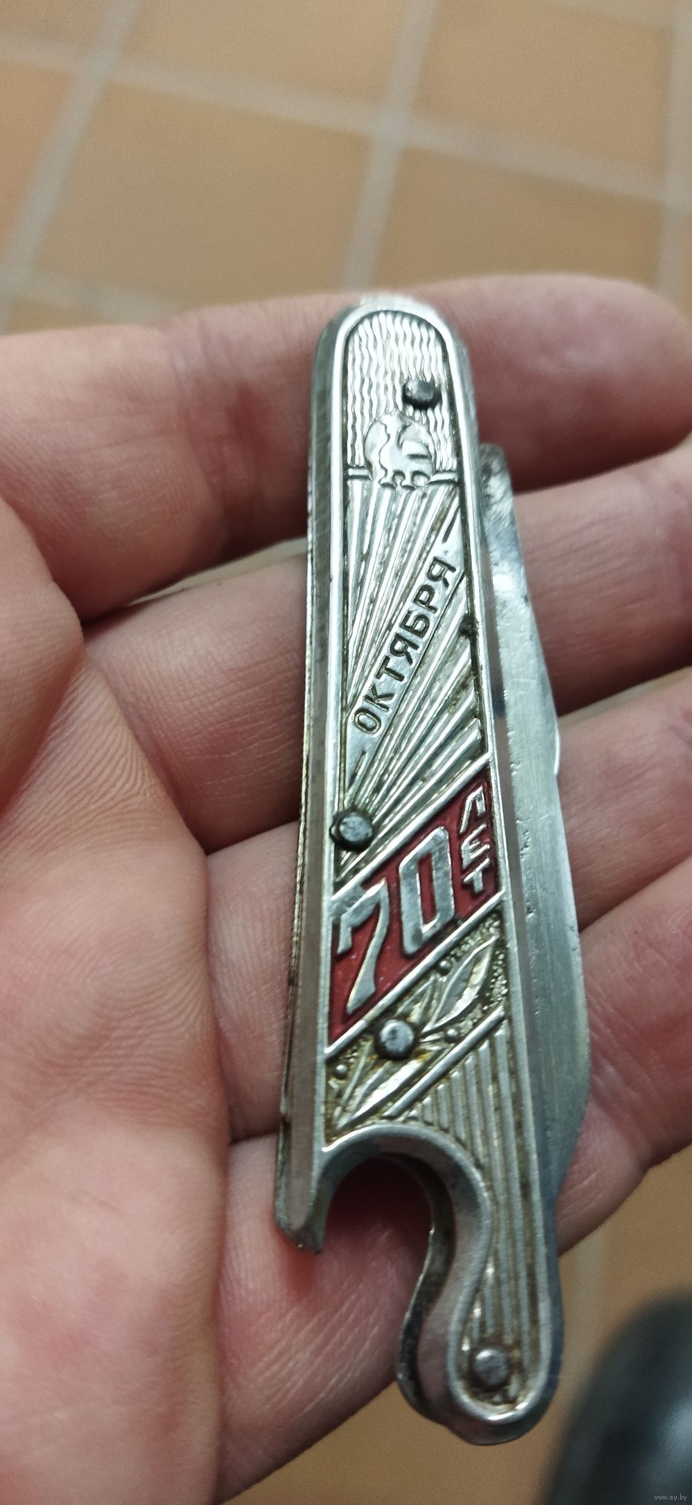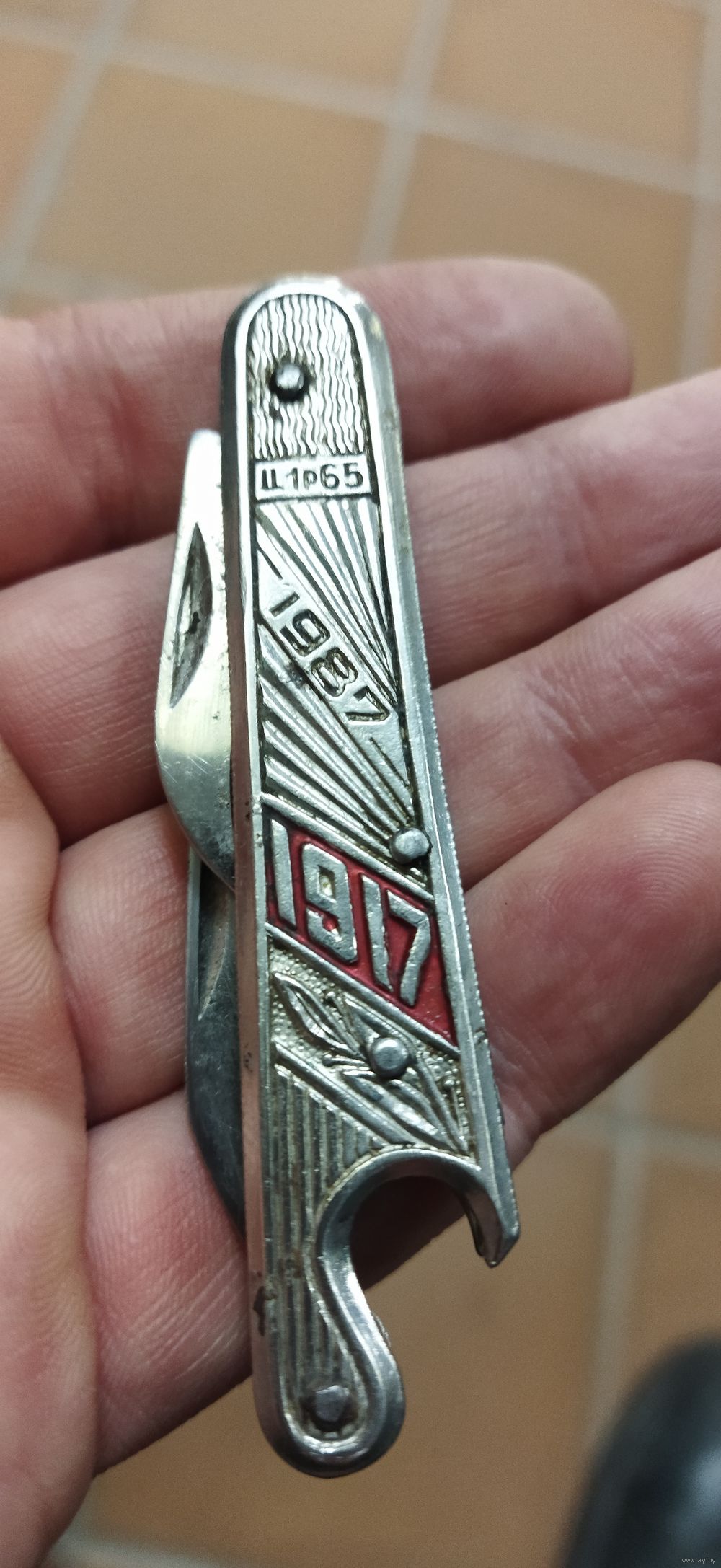 Нечастый нож, СССР Ворсма, 70 лет Октября, 1917-1987, Нарзанник, Пивник. Агитация. Революция. Без люфтов и шатов. Лезвие не уточнено. Пружины отличные. Щелкает. Наличие уточняйте
