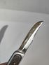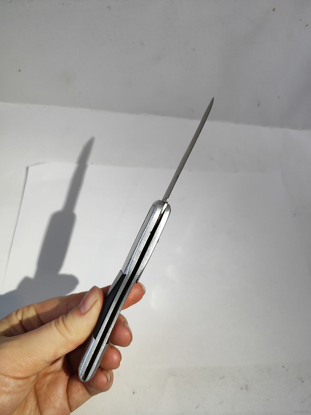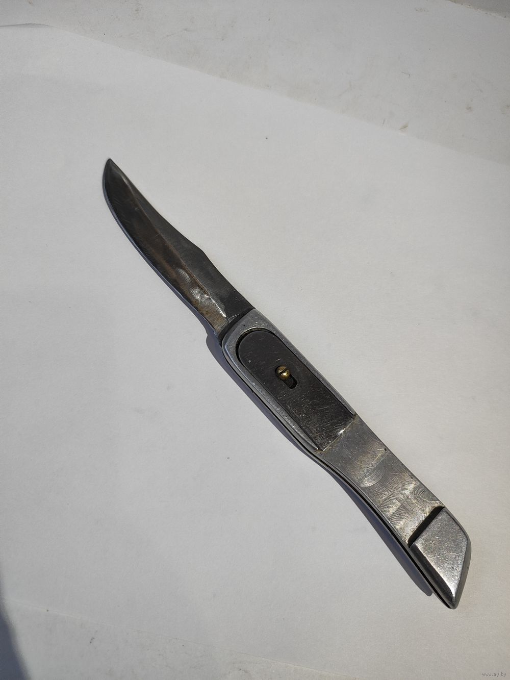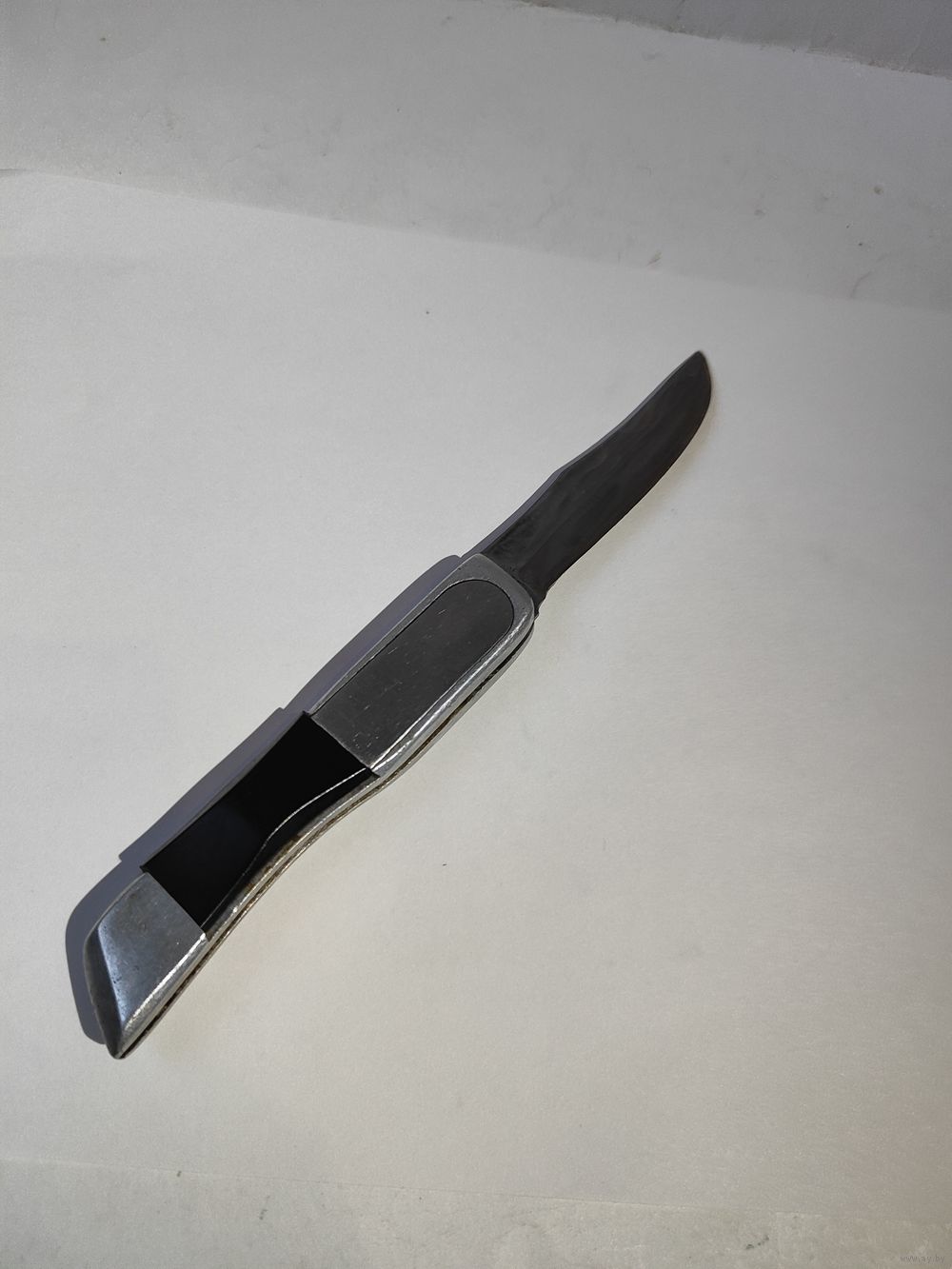 Выкидной рабочий. Лезвие фиксируется но шатается в сторону его закрытия примерно на 1 см(если смотреть по вершинке). Состояние на фото(нет одной чёрной ,пластиковой накладки). Размер раскрытого ножа-19 см. Лезвия- 8,4 см.