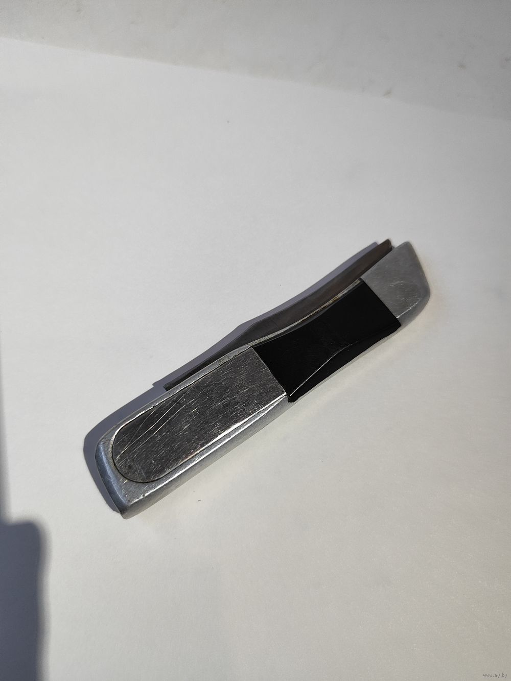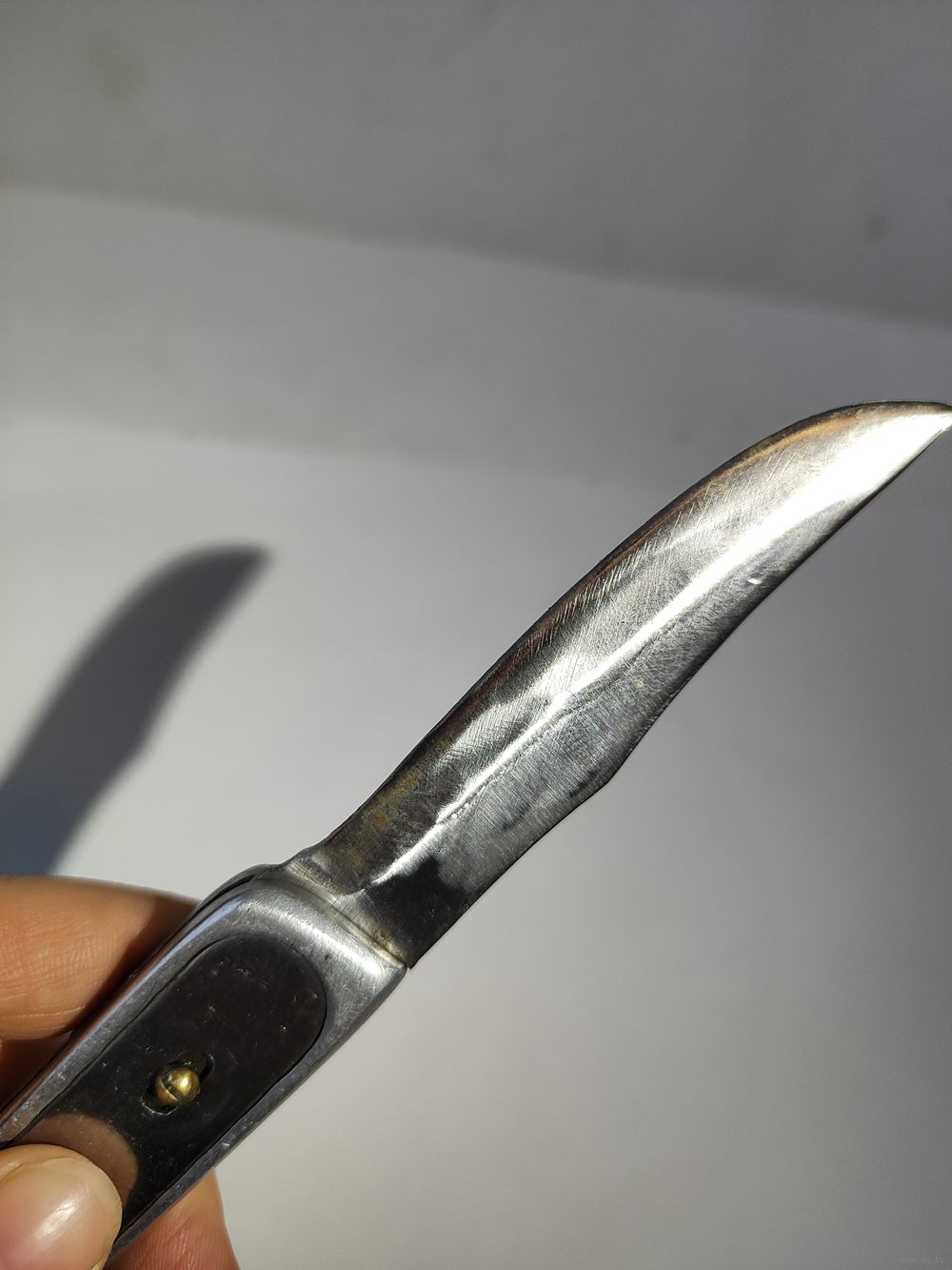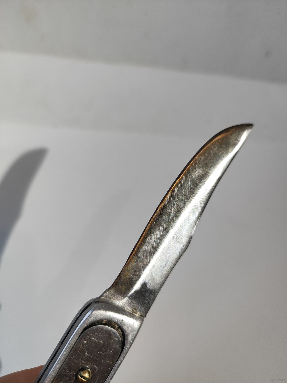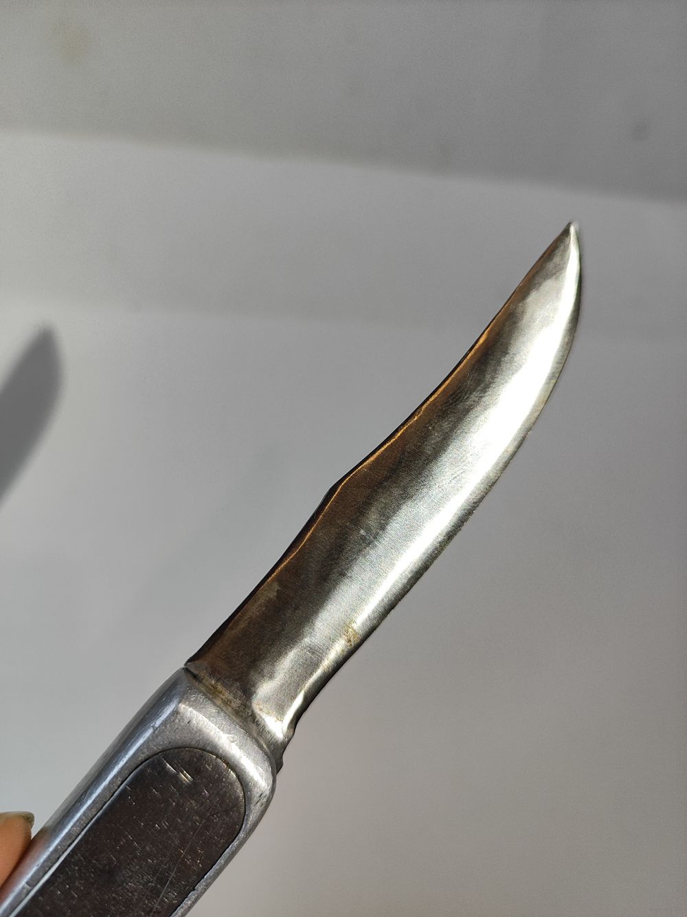 Выкидной рабочий. Лезвие фиксируется но шатается в сторону его закрытия примерно на 1 см(если смотреть по вершинке). Состояние на фото(нет одной чёрной ,пластиковой накладки). Размер раскрытого ножа-19 см. Лезвия- 8,4 см.