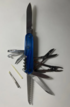 Нож, Малый нож, Открывашка для консервных банок, совмещенная с отверткой SL, Открывашка для бутылок, совмещенная с отверткой SL,Ножницы, Пила по дереву, Напильник, Мини-плоскогубцы, Штопор, Шило-развертка, Многофункциональный крюк, Отвертка SL для точечных работ, Мини-стамеска, Пинцет, Зубочистка, Кольцо для ключей, Так же в комплект входит прочный нейлоновый чехол
