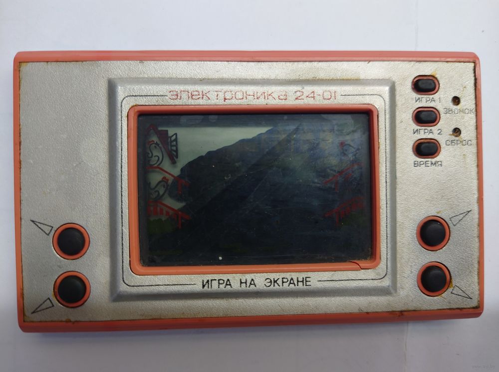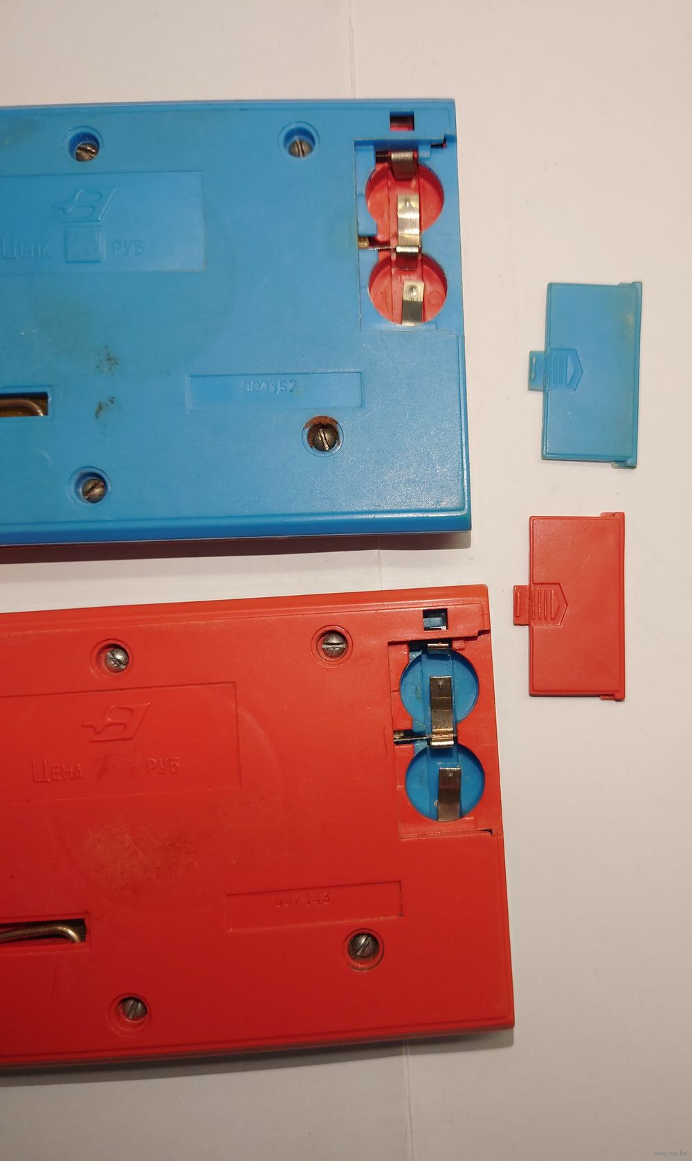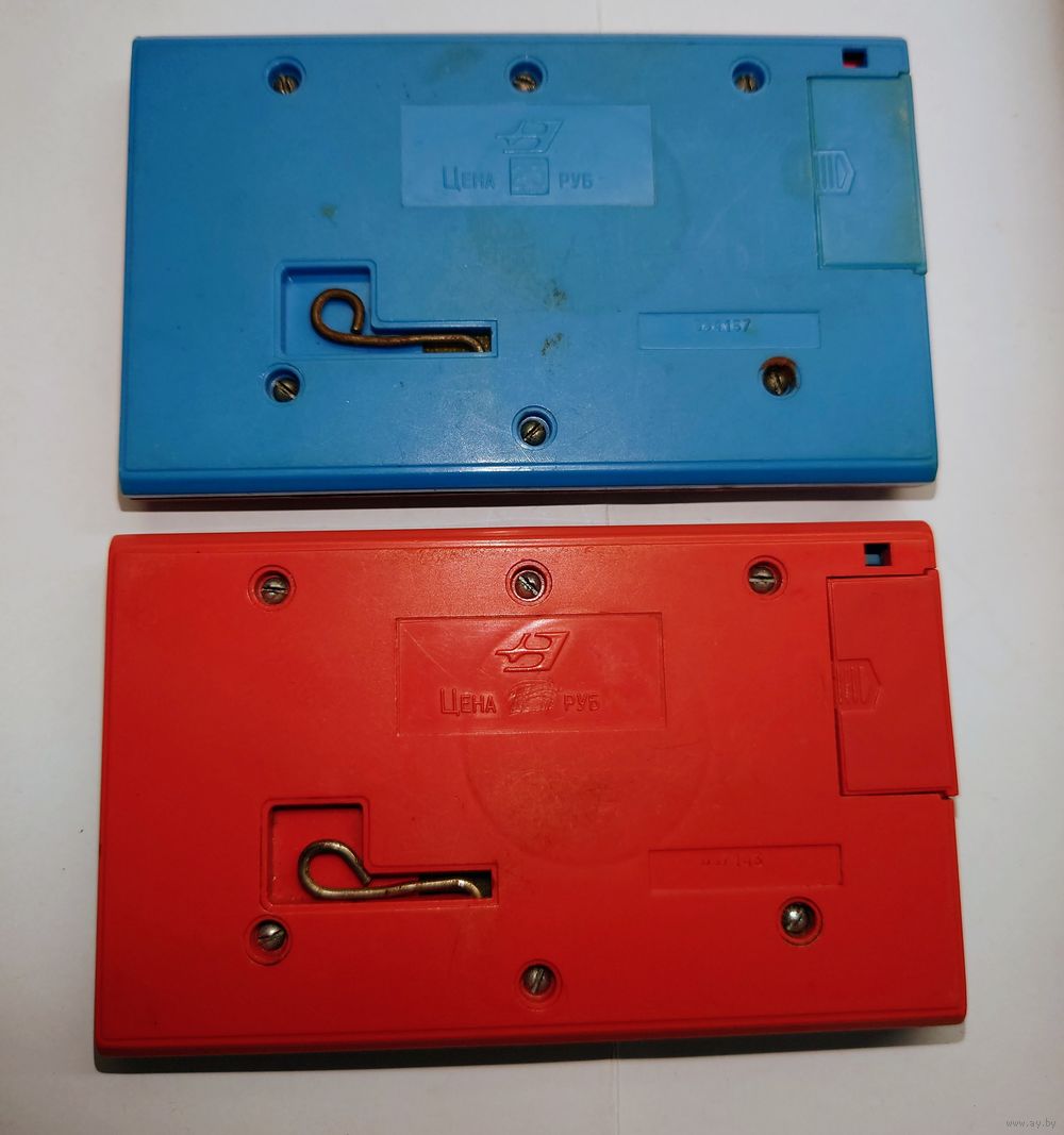 Электроника Ну погоди обе 24-01. У которой красный кант экран продавлен. У которой зелёный вроде получилось словить контакт батарейками но не долго. В общем обе как донор или восстановление.