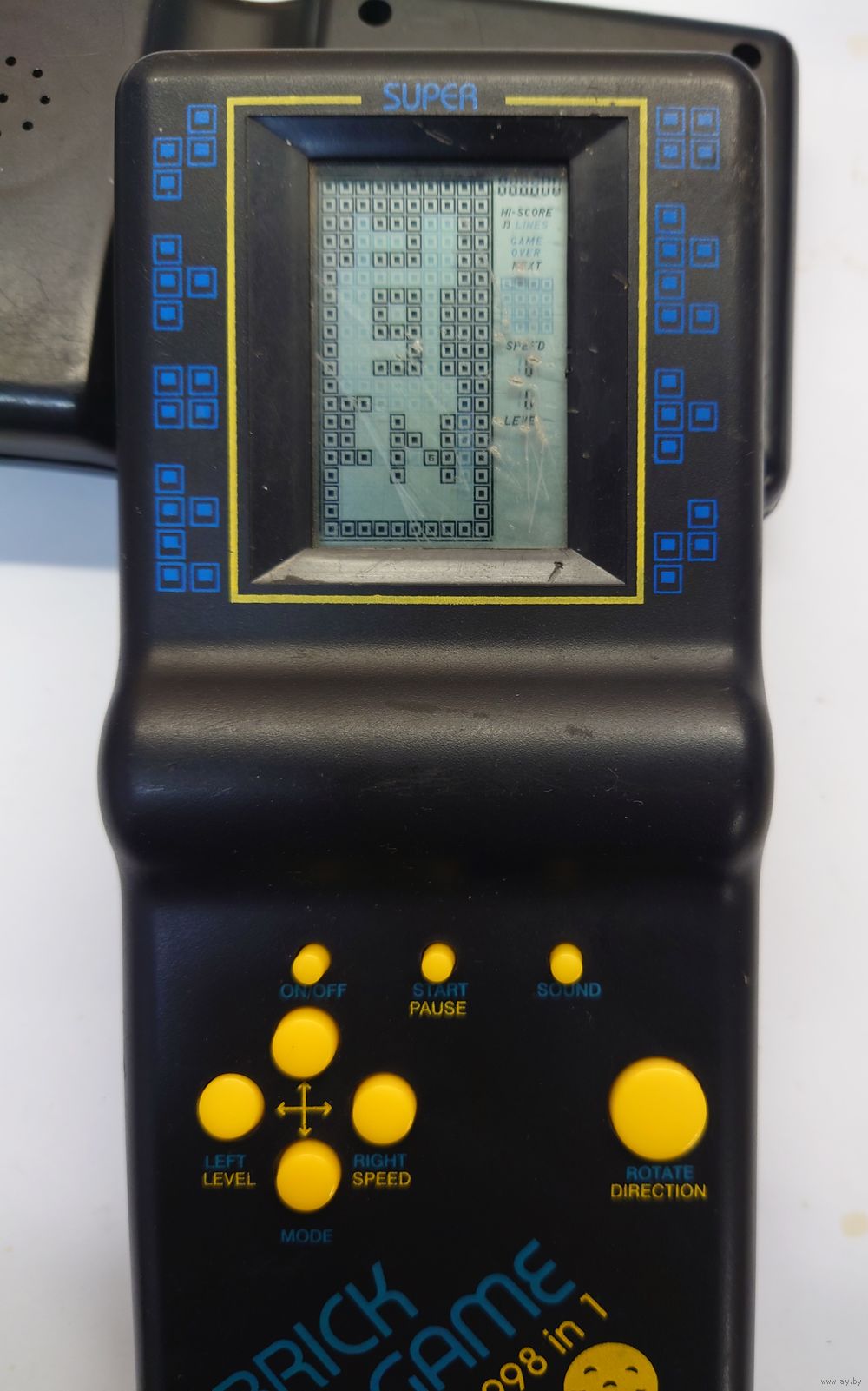 Тетрис Е-88 играть можно; Е1998 кнопка влево не работает. Состояние смотрите по фото. Крышка для отсека батареек одна на два устройства.