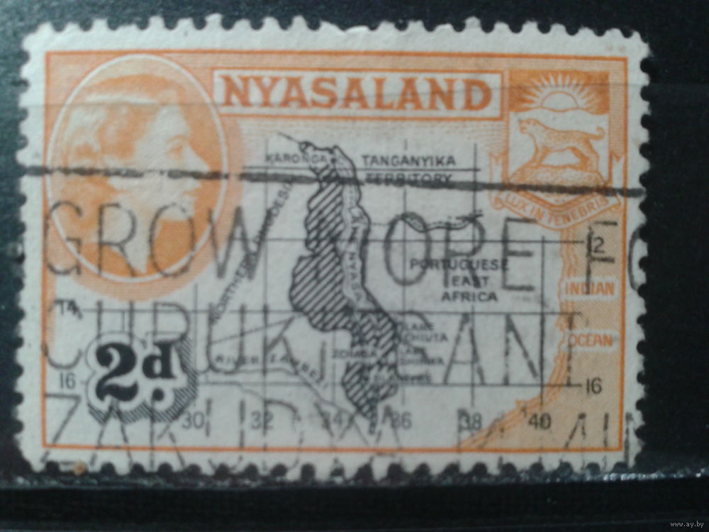 Ньясаленд, 1953. Королева Елизавета II и карта Ньясаленда